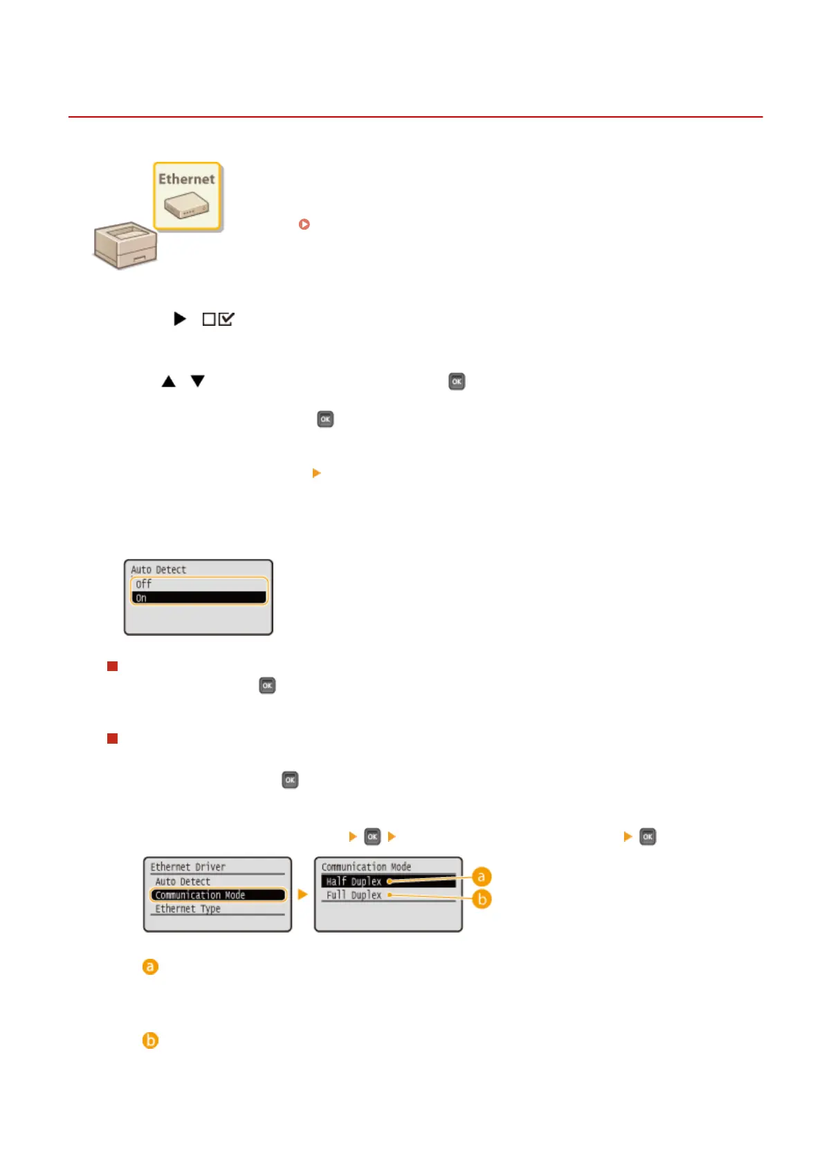 Select <On> and press . The machine detects and automatically sets the communication mode and the