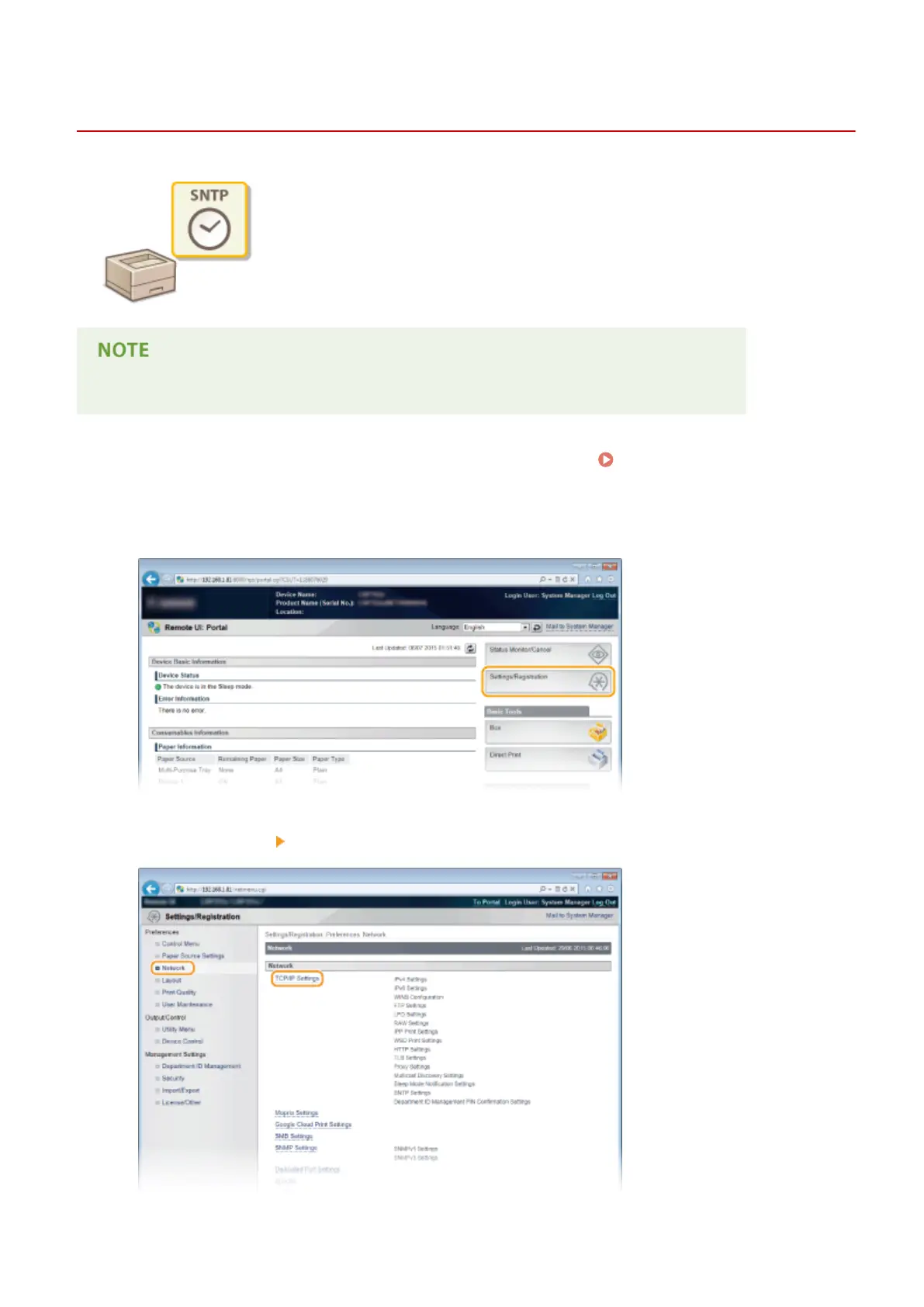 ● The SNTP of the machine supports both NTP (version 3) and SNTP (versions 3 and 4) servers.