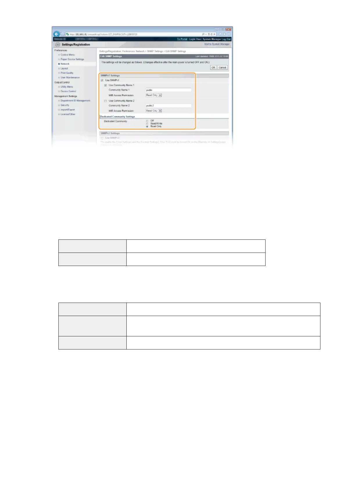 [Read Only] Permits only viewing the values of MIB objects by using Dedicated Community.