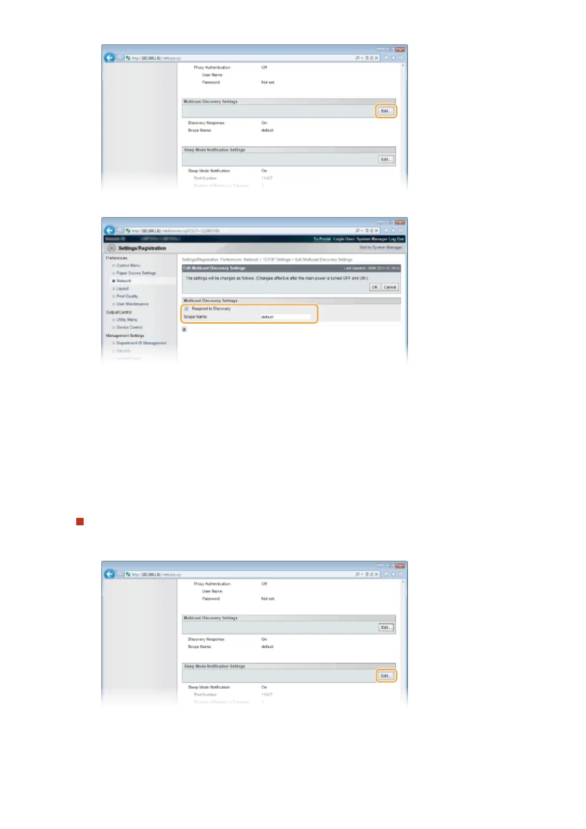 Click [Edit] in [Sleep Mode Notication Settings].