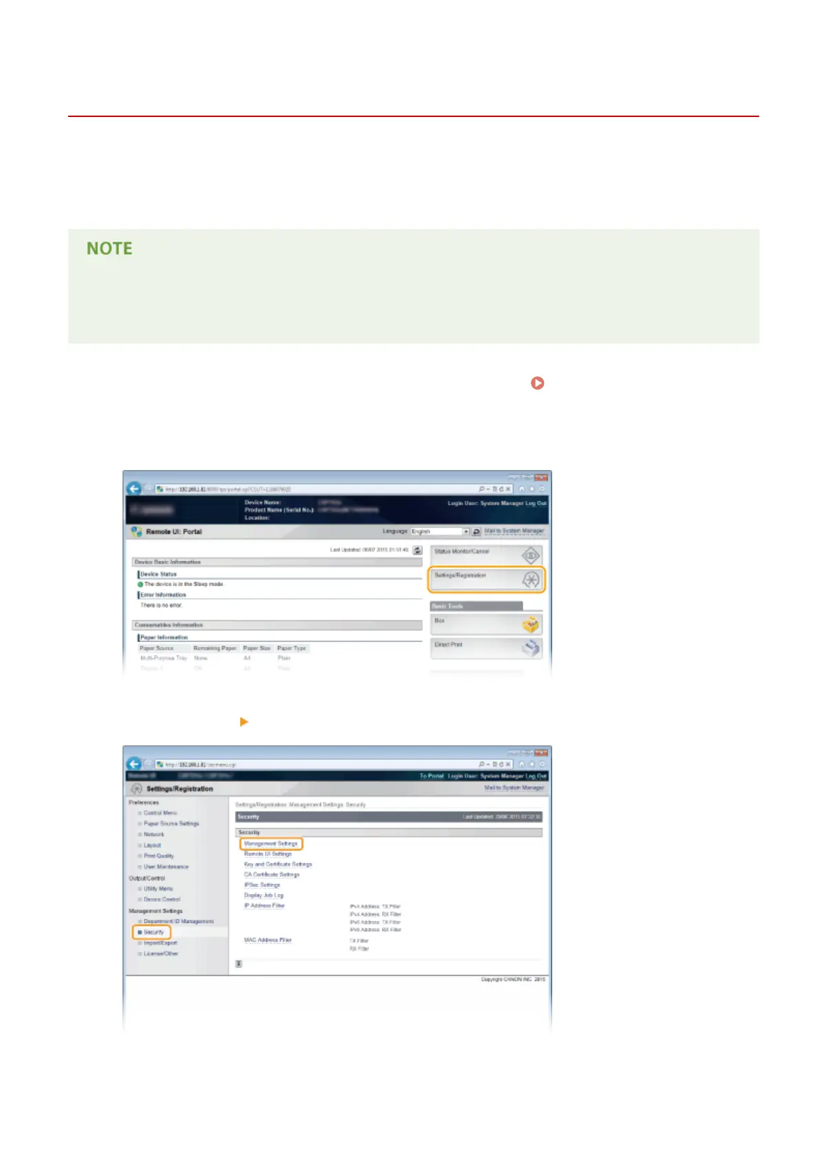 Click [Security] [Management Settings].