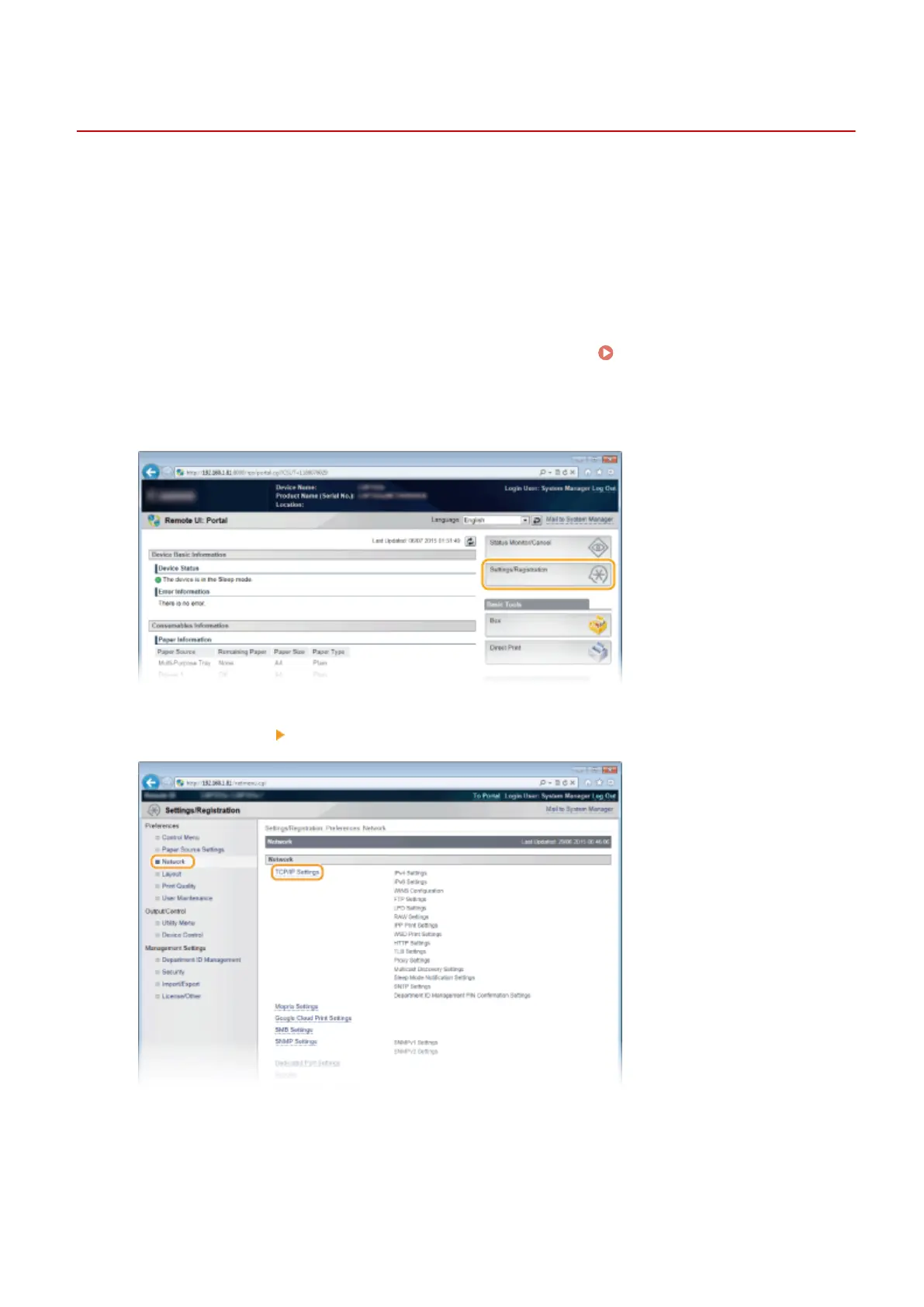 Click [Network] [TCP/IP Settings].