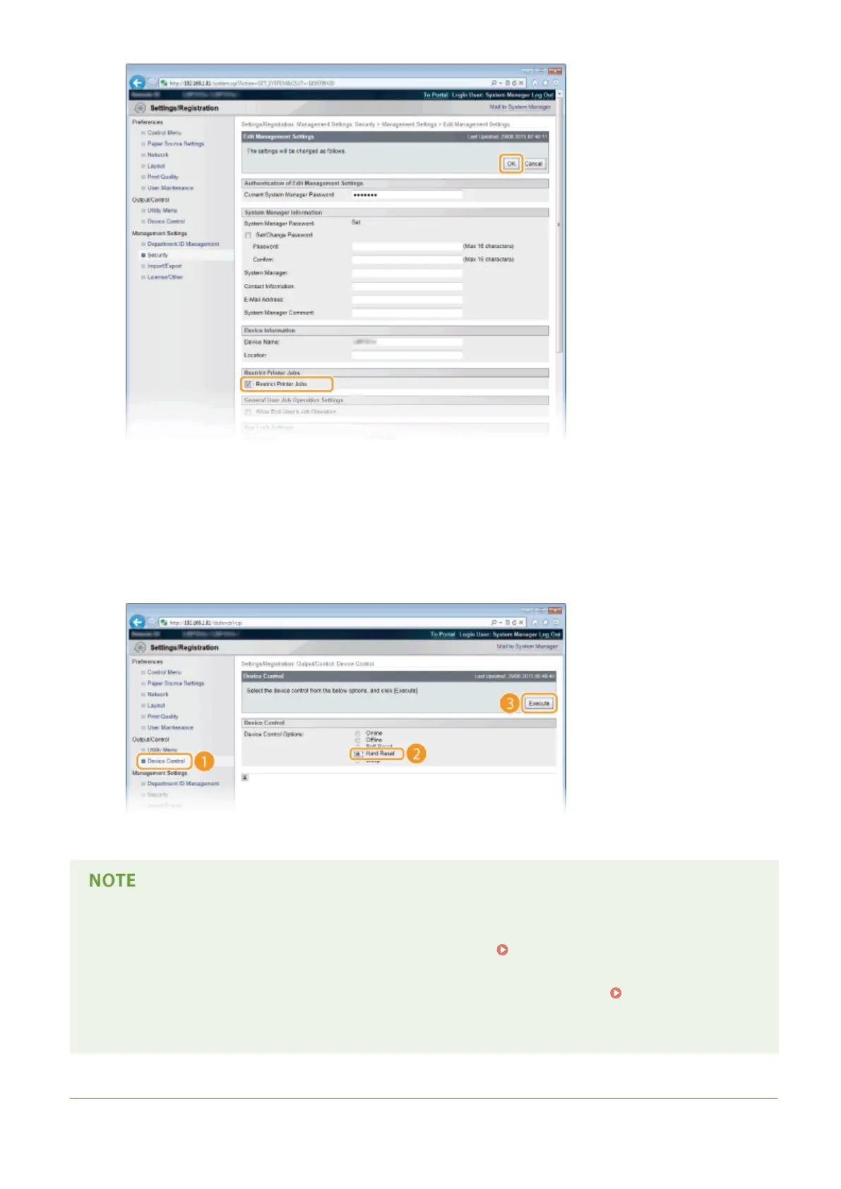 ● Click [Device Control], select [Hard Reset], and then click [Execute].
