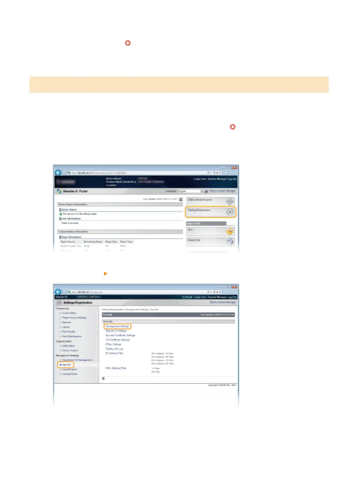 Start the Remote UI and log on in Management Mode. Starting Remote UI(P. 336)