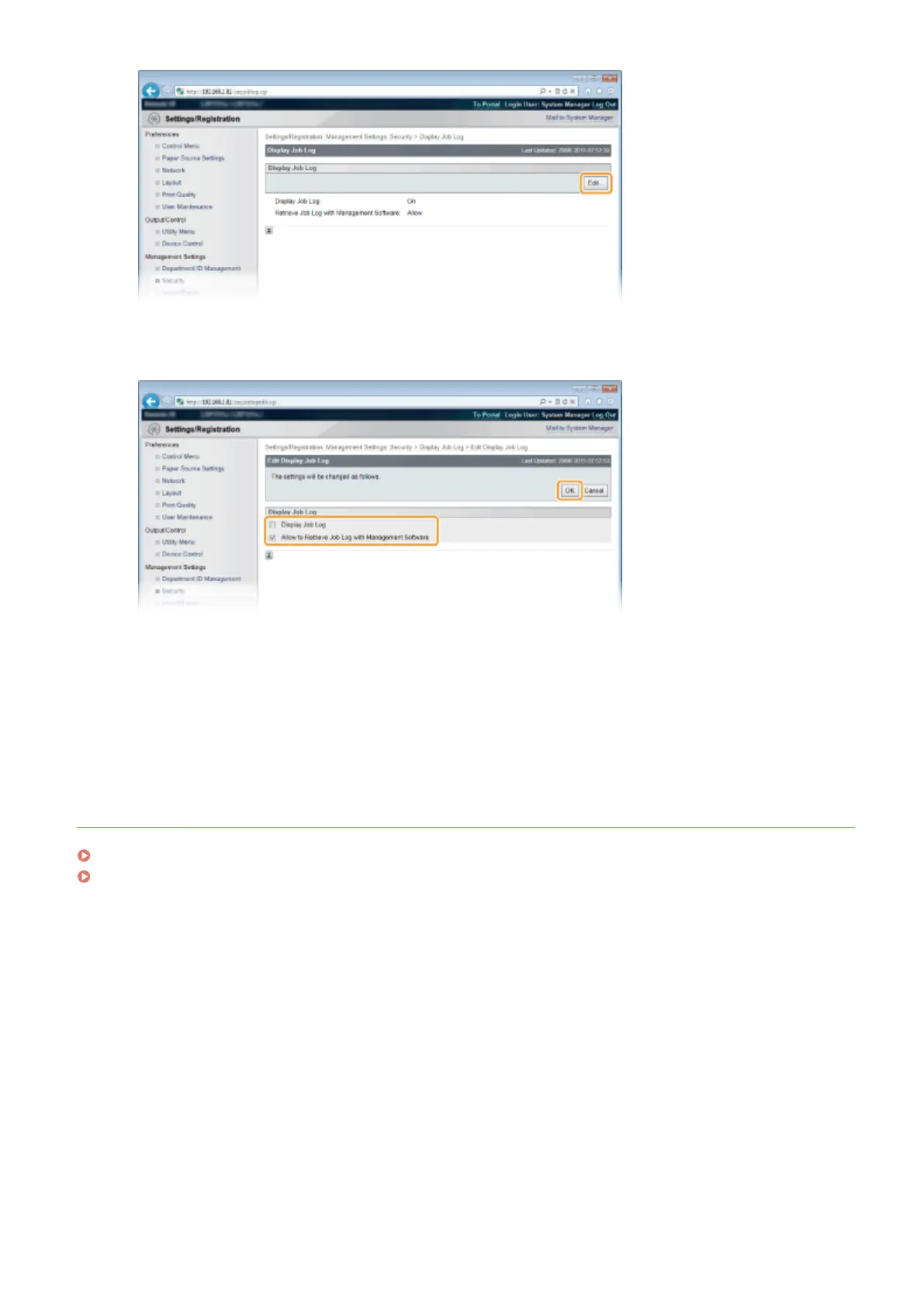 obtain the print job history. This function is automatically enabled when the [Display Job Log] check box is