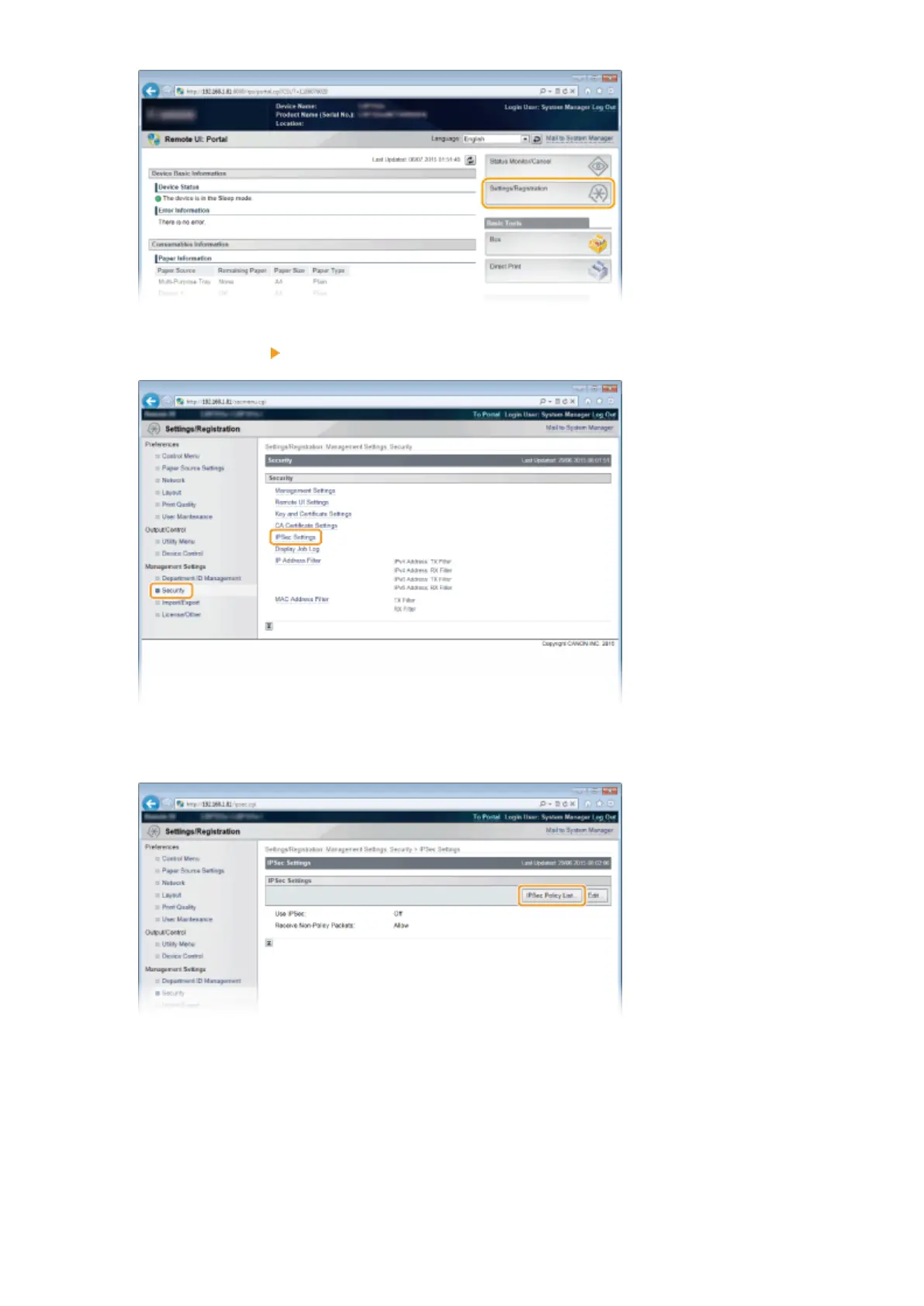 Click [Security] [IPSec Settings].
