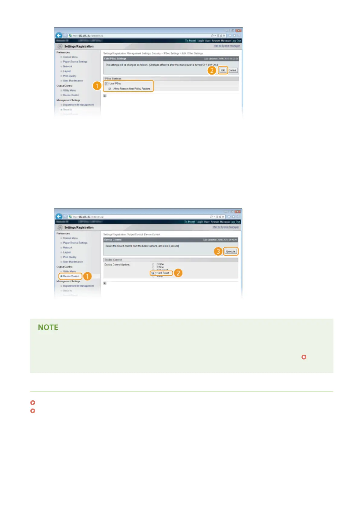 ● Click [Device Control], select [Hard Reset], and then click [Execute].