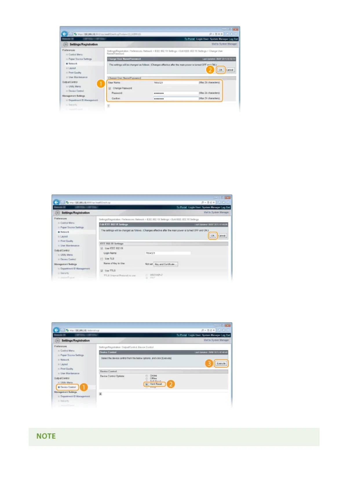 ● Click [Device Control], select [Hard Reset], and then click [Execute].