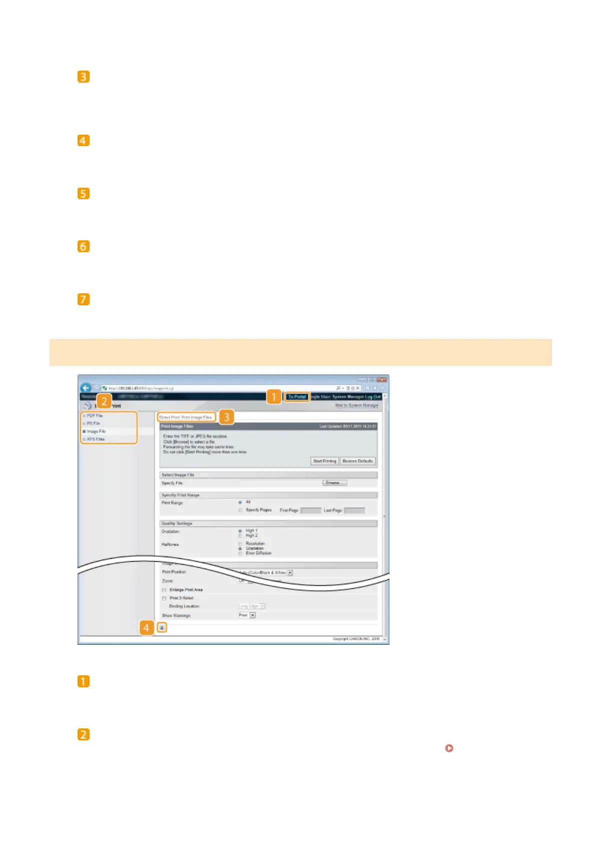 Displays the page for specifying the le format of a le to be printed by Direct Print.