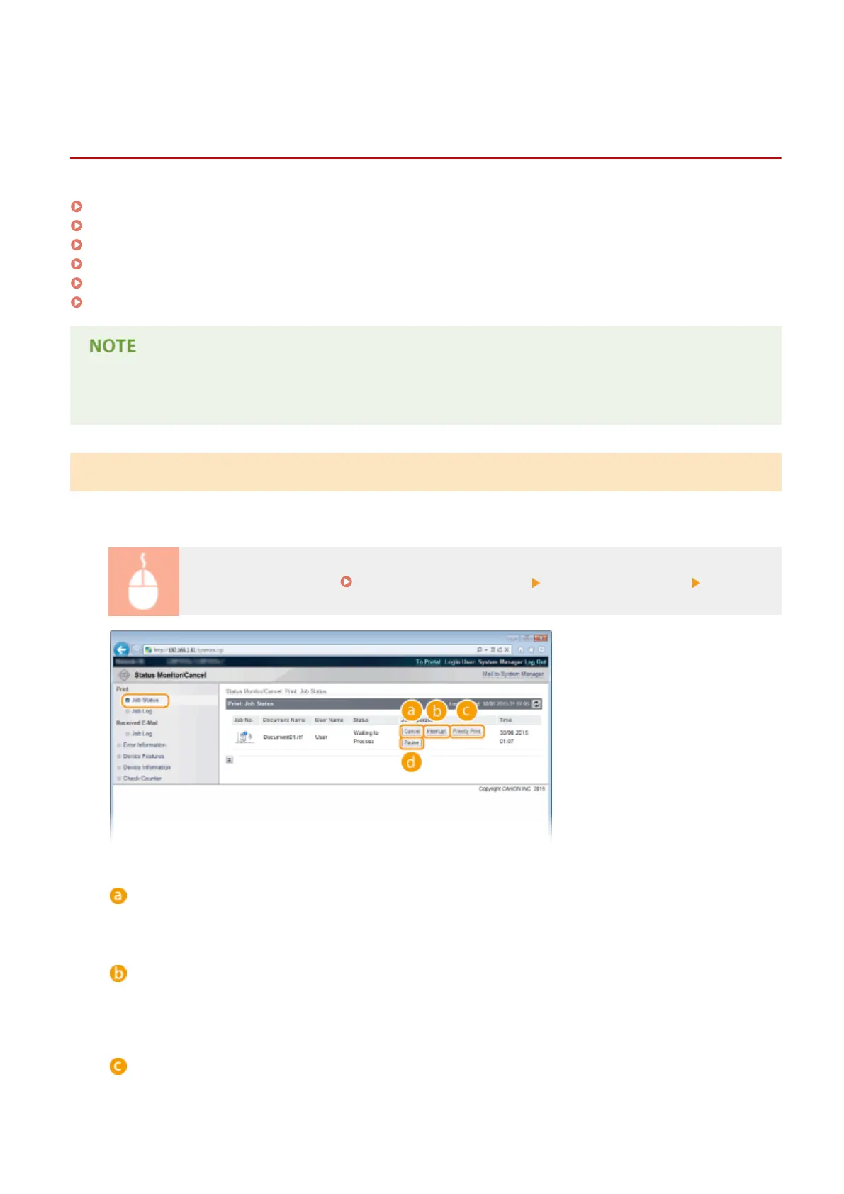 Log on to the Remote UI ( Starting Remote UI(P. 336) ) [Status Monitor/Cancel] [Job Status]
