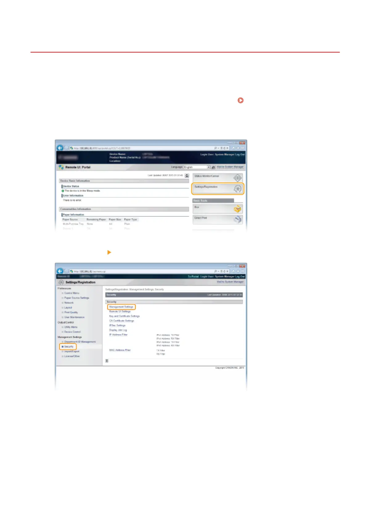 Click [Security] [Management Settings].