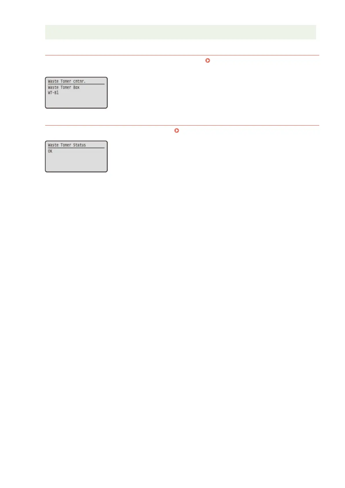 You can display the status of waste toner container. Checking the Status of Waste Toner Container(P. 599)
