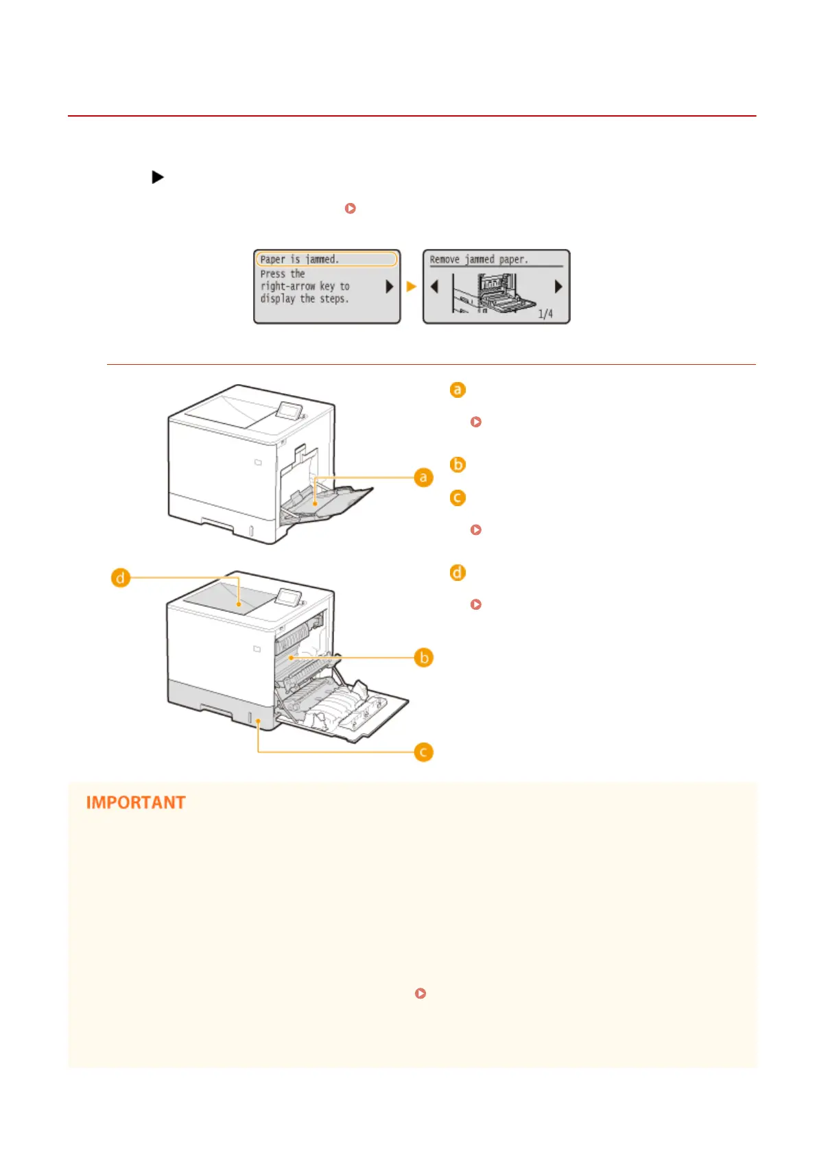 following sections to clear jams. If a paper jam occurs in multiple locations at the same time, check all messages that