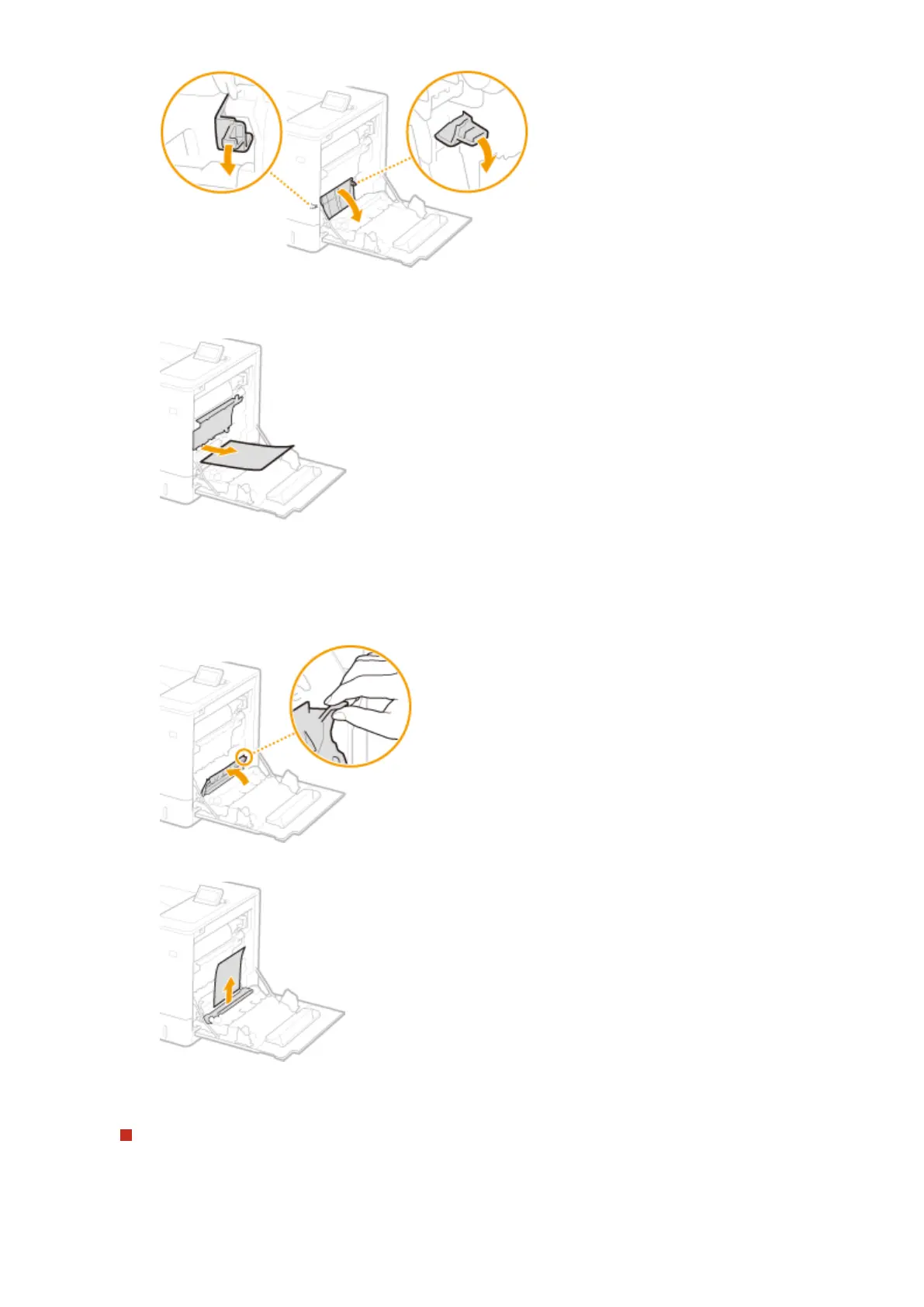 ● Pull out the paper while holding it as horizontally as possible to prevent unxed toner from falling.