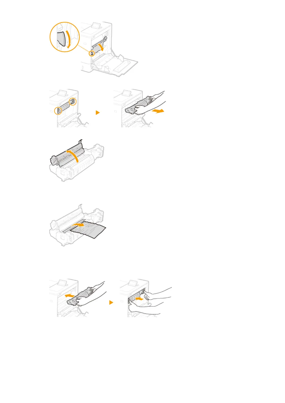 ● Pull out the paper while holding it as horizontally as possible to prevent unxed toner from falling.