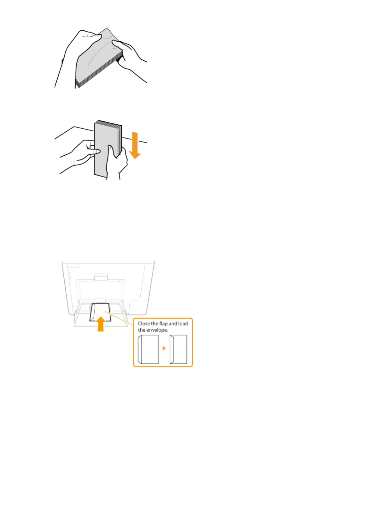 Load the envelope so that the edge with the ap is toward the left side as shown in the illustration.
