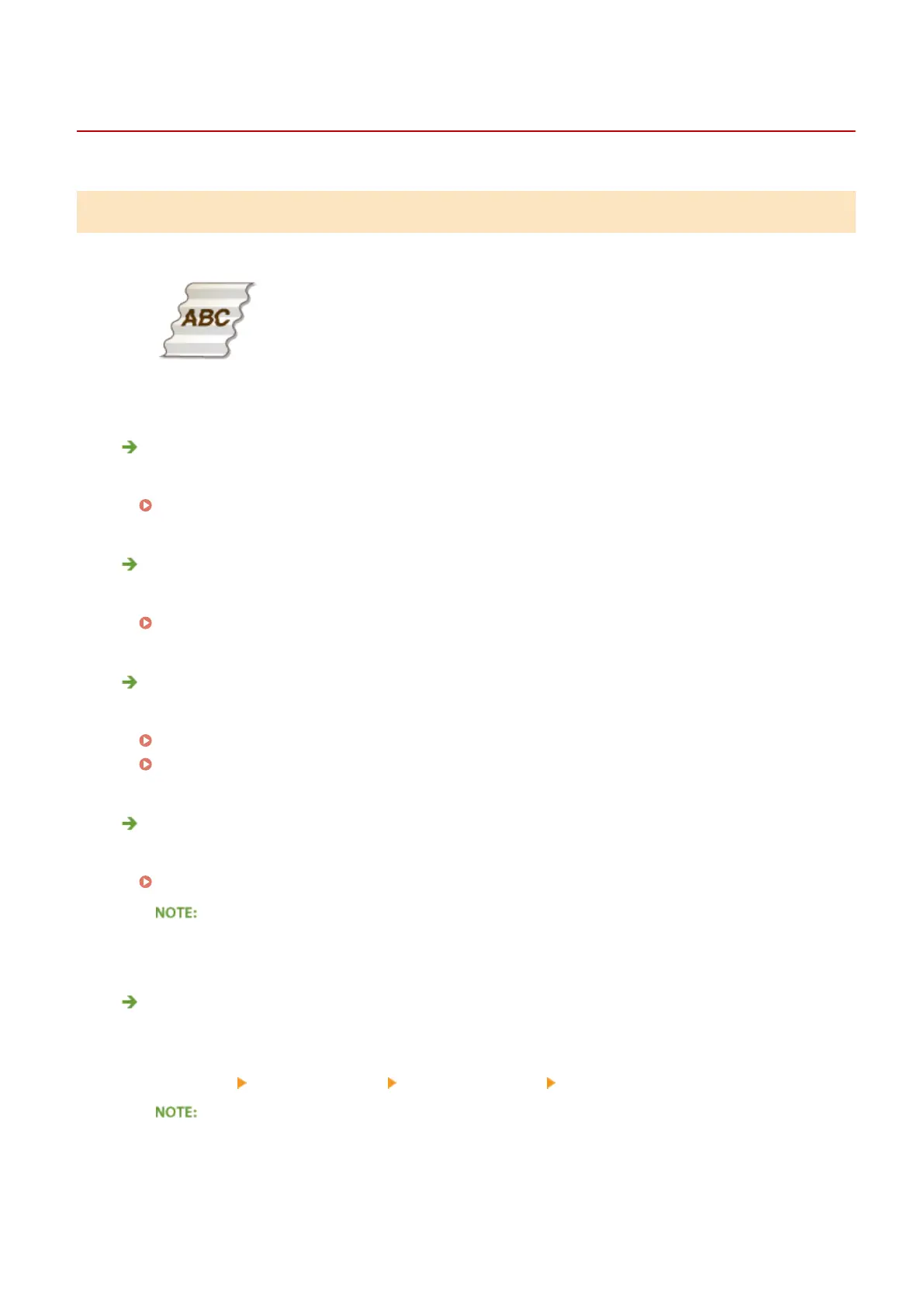 ● Change the setting of <Reduce Waving (Thin)>. Selecting <On> may improve the problem.