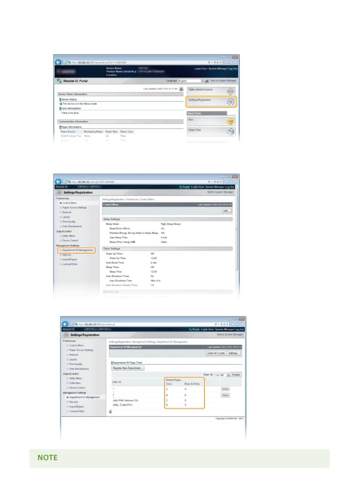 The number of printed pages is displayed for each Department ID under [Printed Pages].