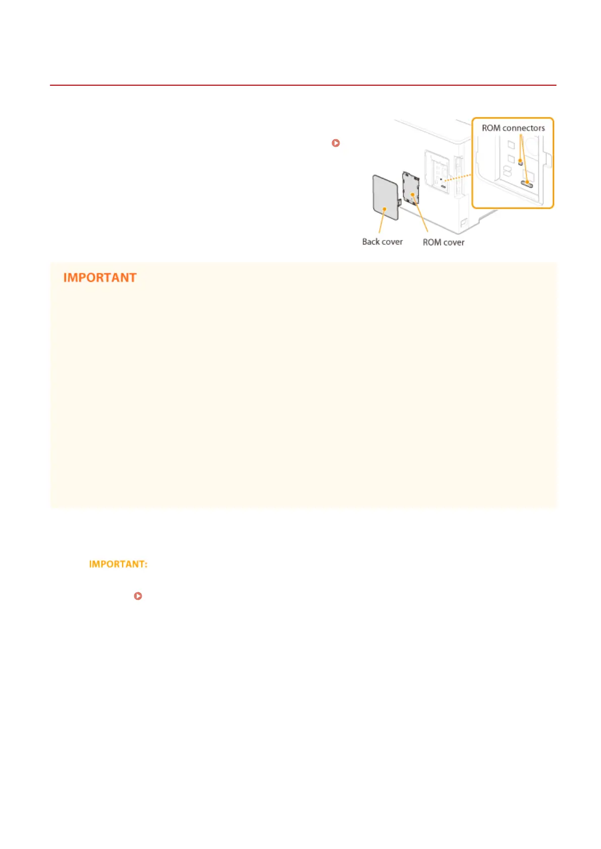 ● Do not turn ON the power when the ROM cover is open. Doing so may result in damage to the machine.