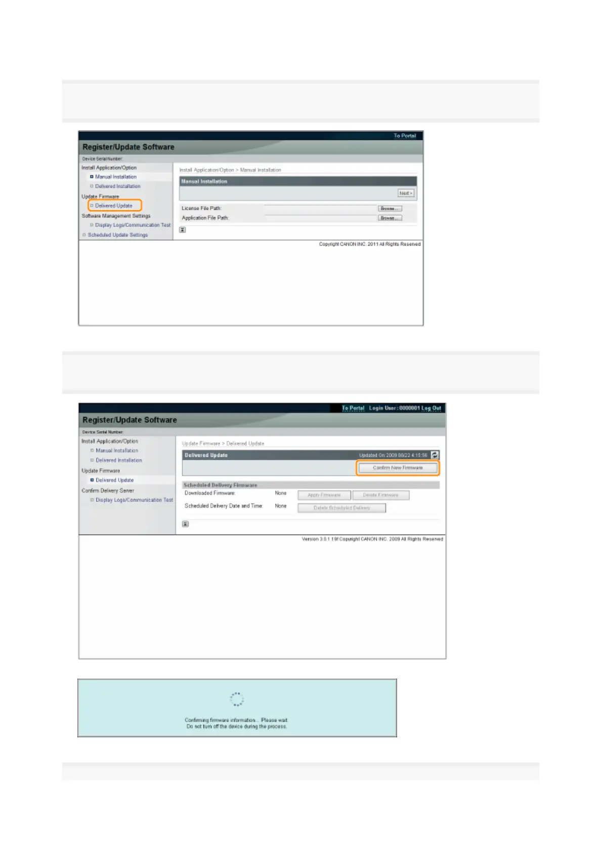 Contact the delivery server for information on whether an applicable new firmware is available or not.