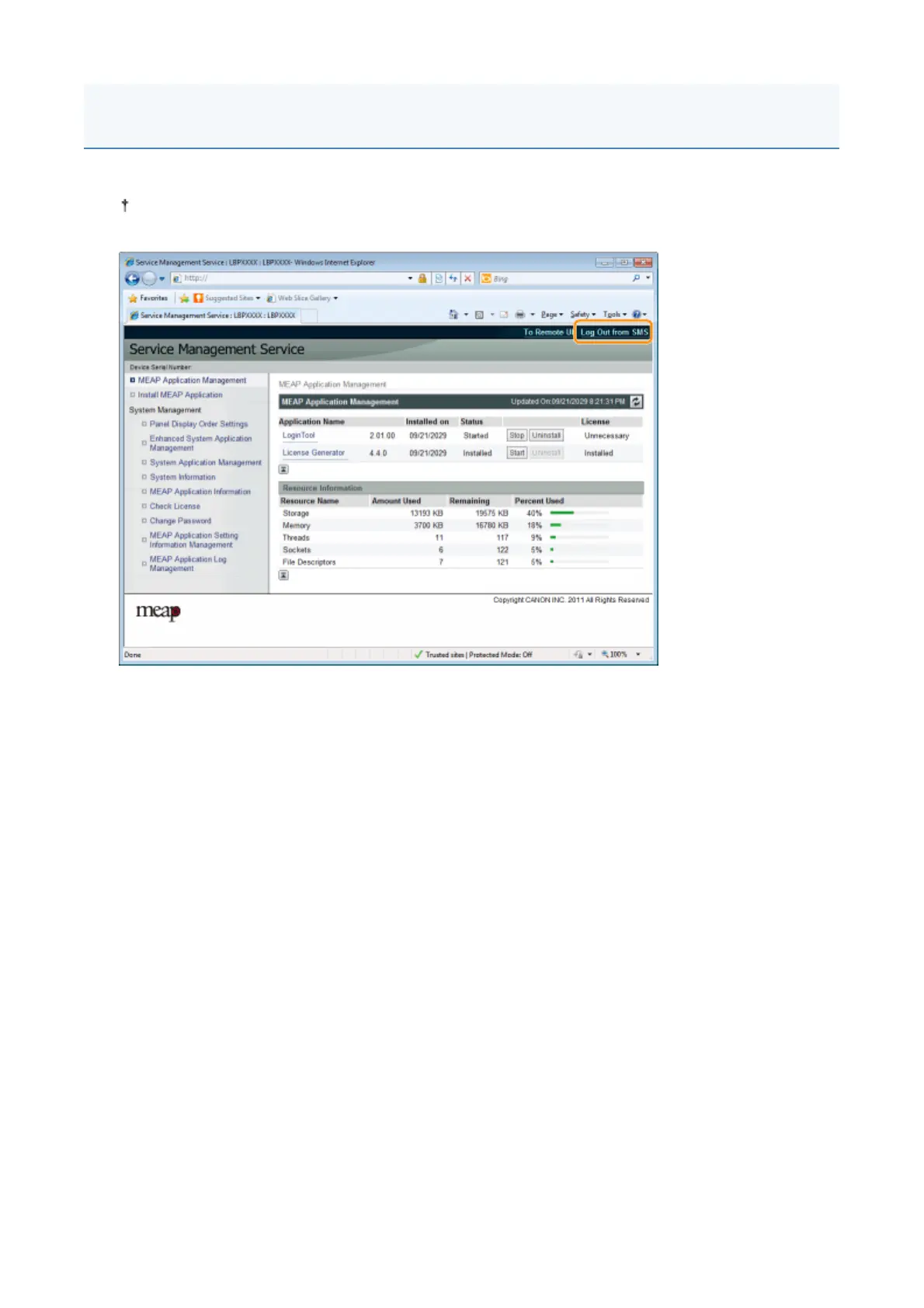 If you close the Web browser without clicking [Log Out from SMS], SMS becomes temporarily