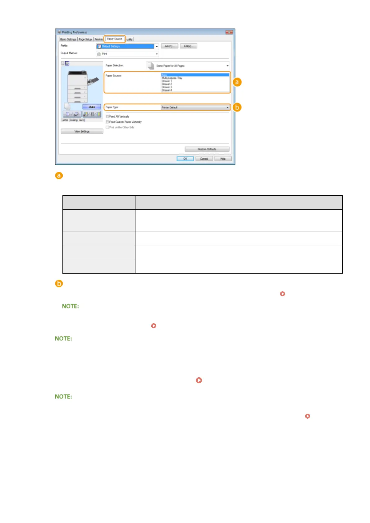 ● If paper is loaded in landscape orientation, select the [Feed A5 Vertically] or [Feed Custom Paper Vertically]