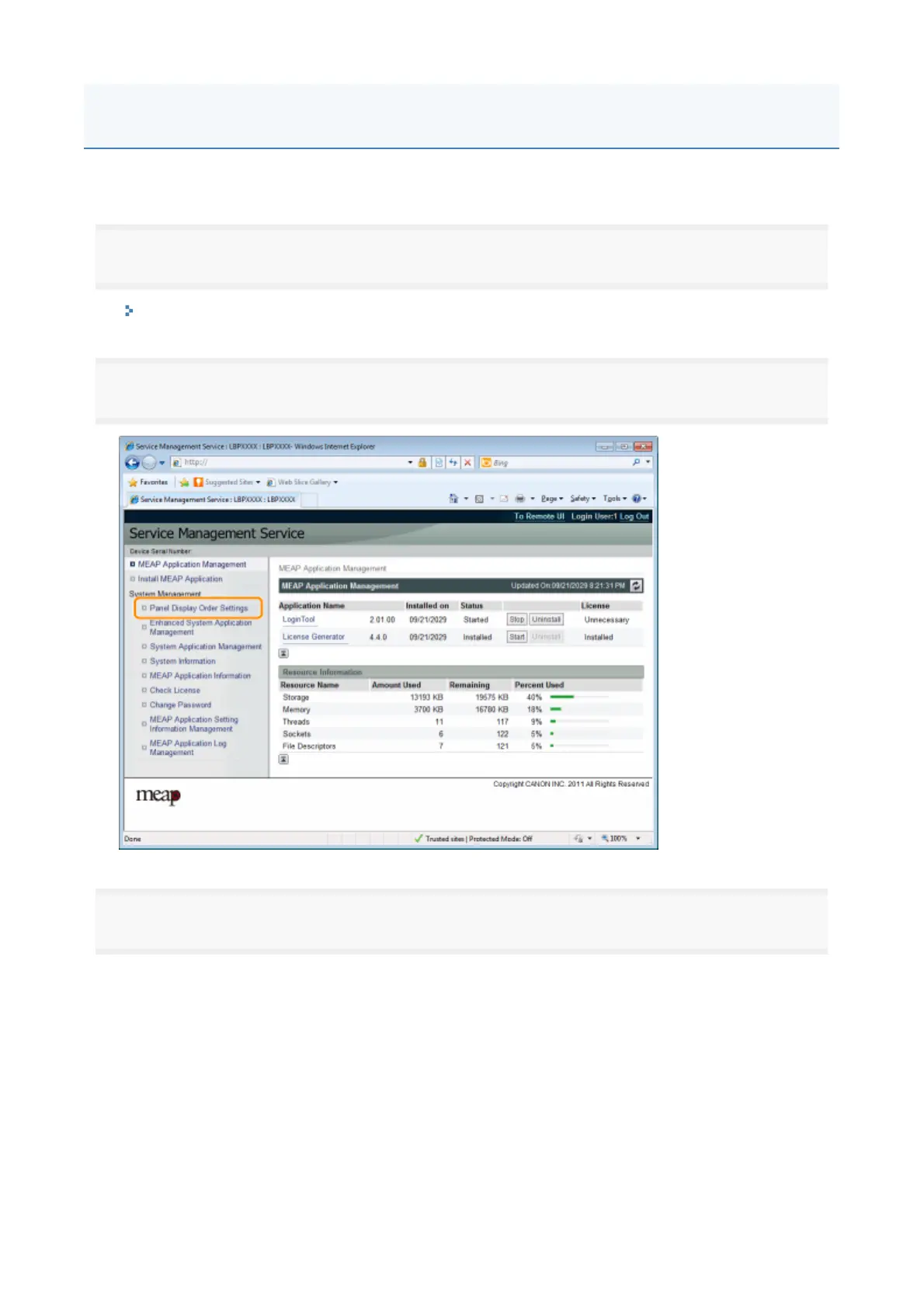 Changing the MEAP Applet Display Order