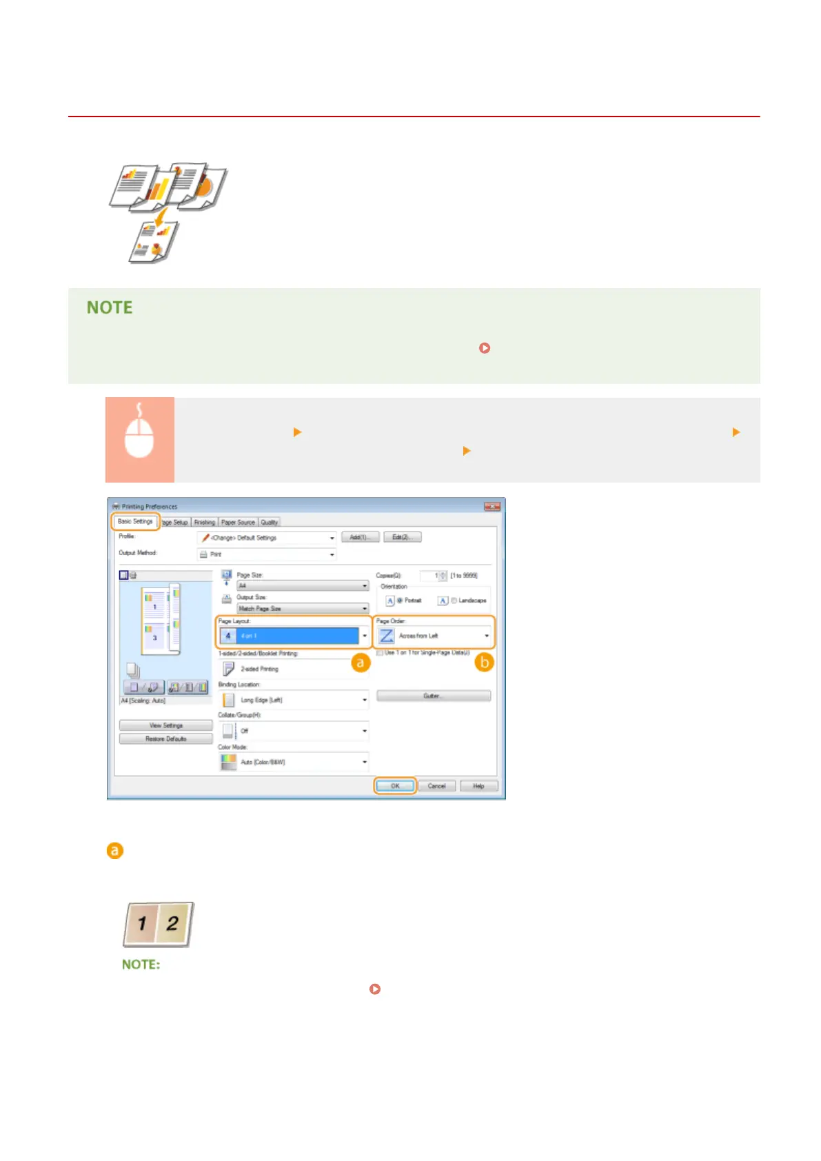 [Basic Settings] tab In [Page Layout], select the number of pages to print onto a single sheet In