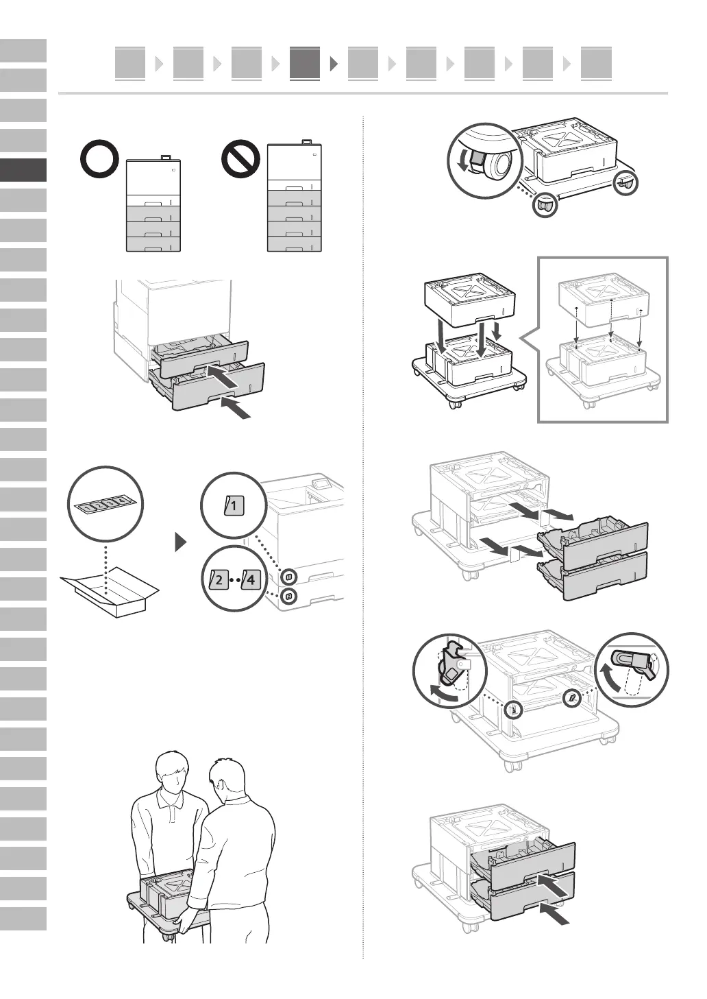 Puede apilar hasta tres alimentadores de papel.