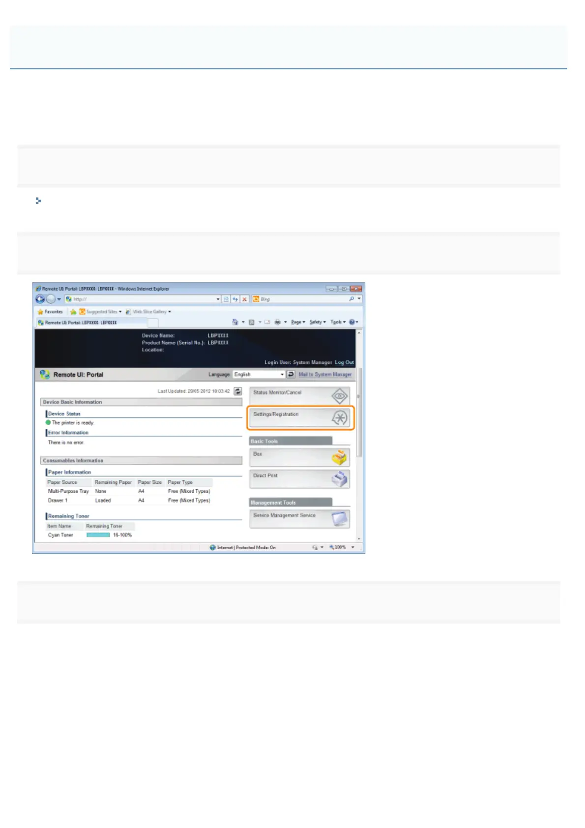 Start the Remote UI, and then log in as Administrator.