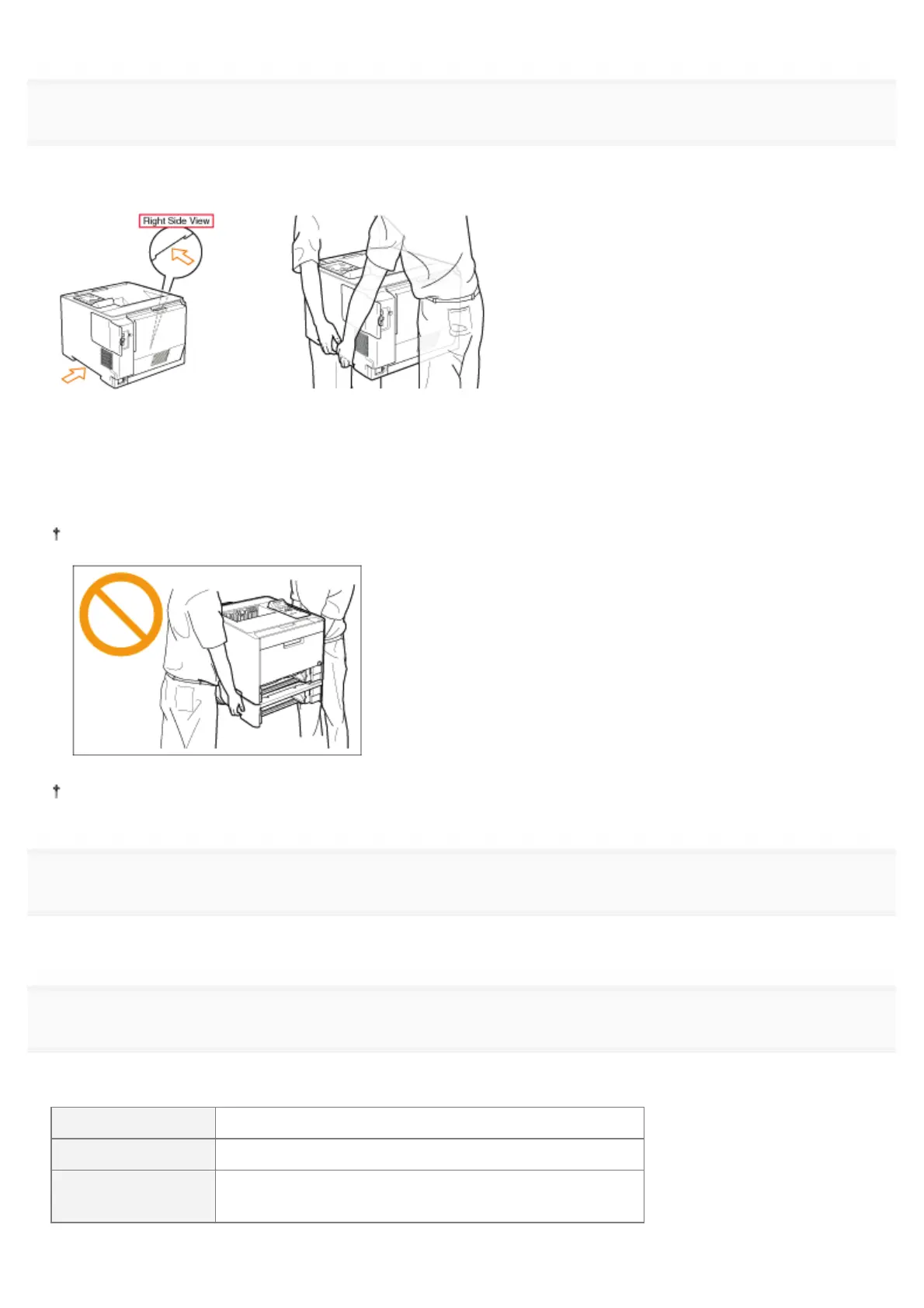 Carry the printer with two or more people by holding the lift handles on the lower portion of the printer and lifting it up at