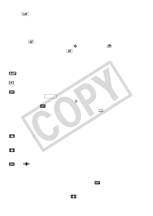 [ On ]: This setting compensates for camcorder shake when