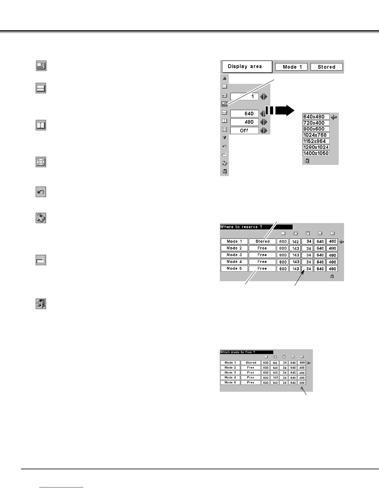 Adjusts the vertical area displayed by this projector. Press the Point