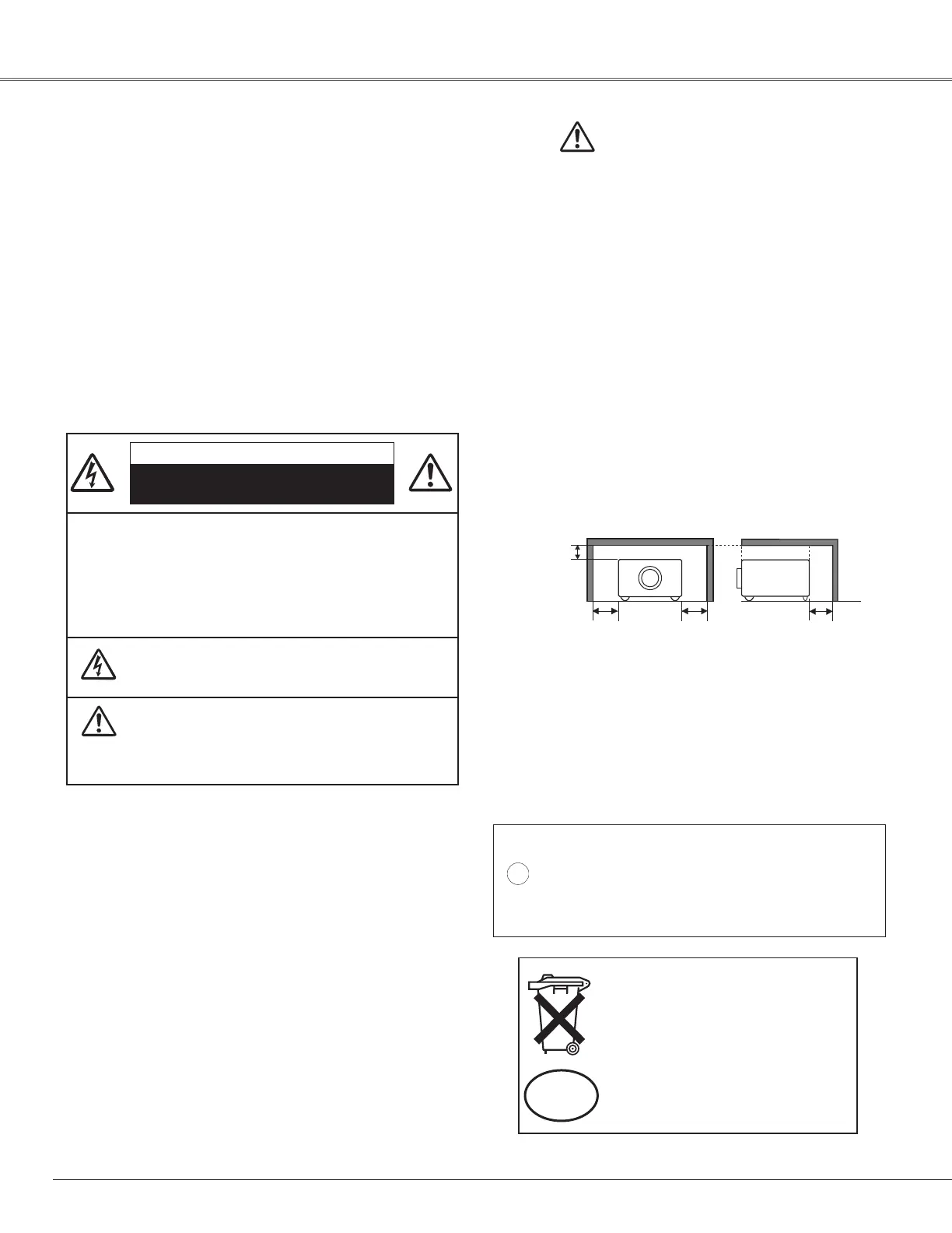 projector. Minimum clearance must be maintained. If the
