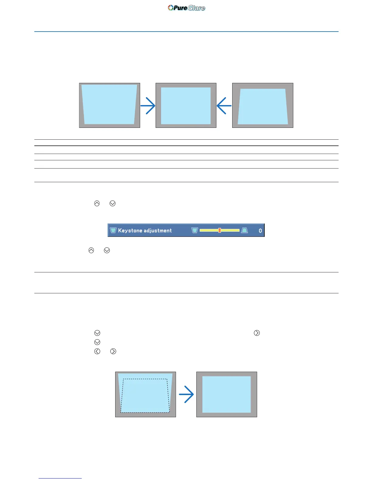 NOTE: Turning off the projector will cause your manual keystone adjustments to return to "0". To save your manual keystone ad-