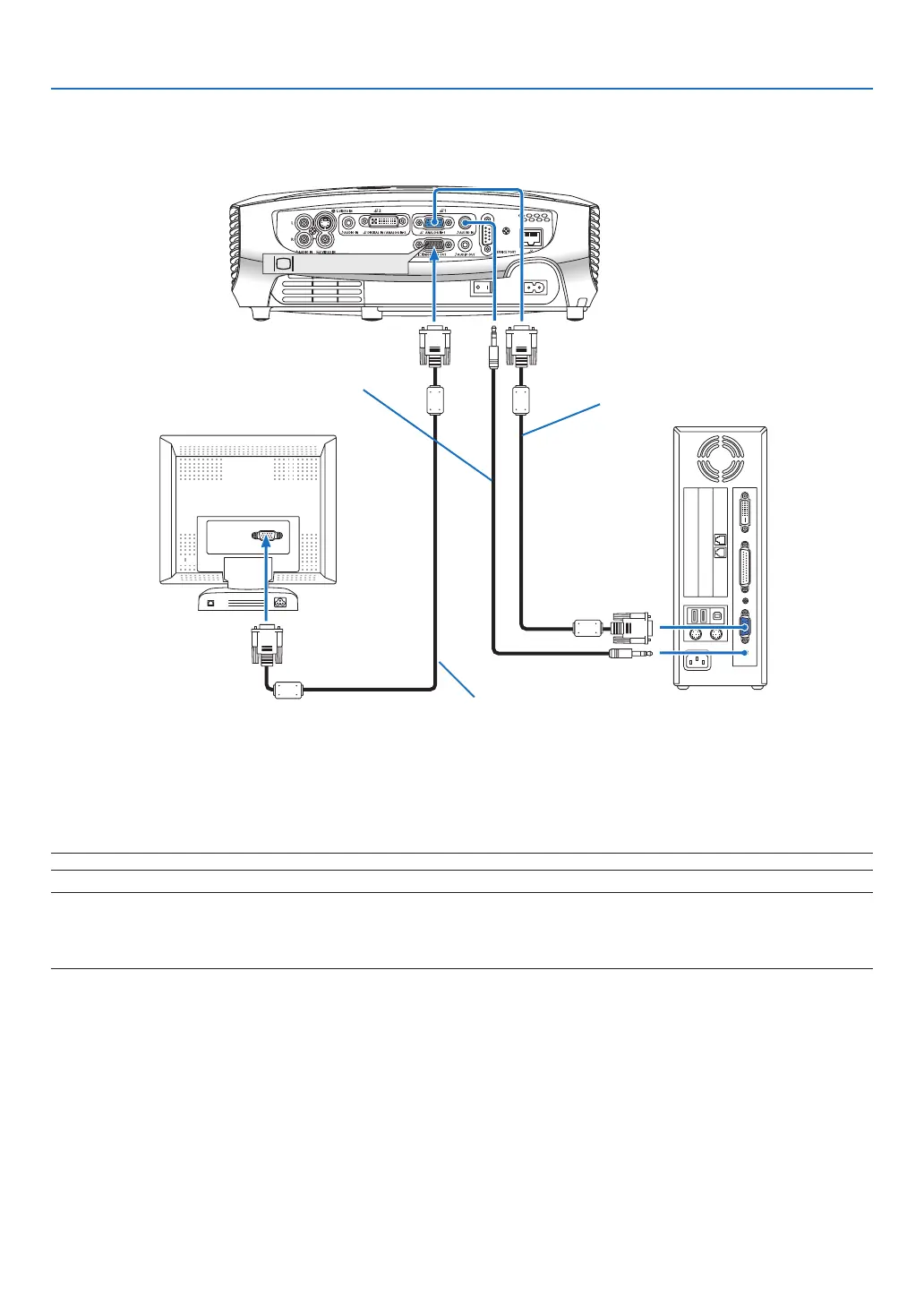 You can connect a separate, external monitor to your projector to simultaneously view on a monitor the RGB ana-