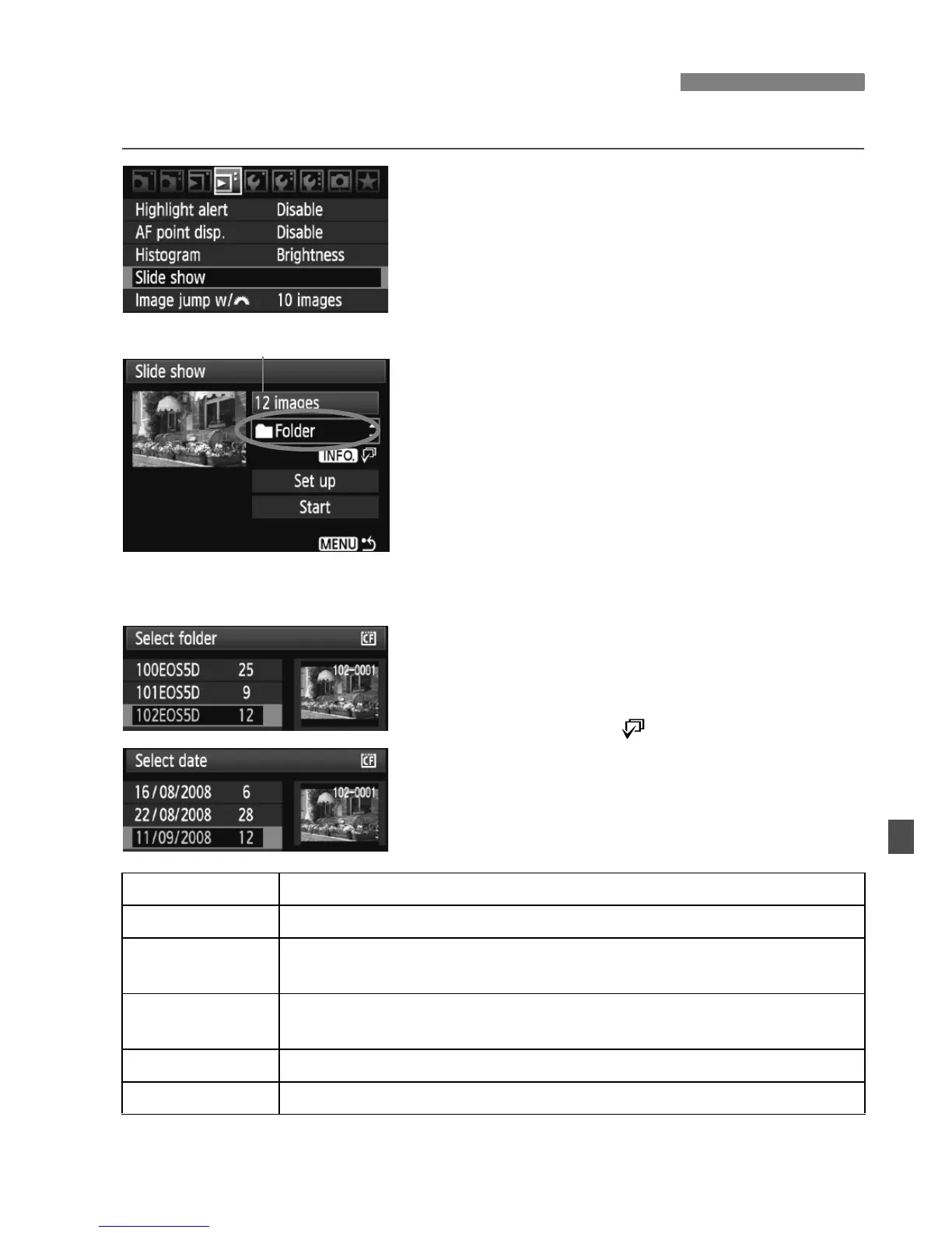 Still photos and movies in the selected folder will be played