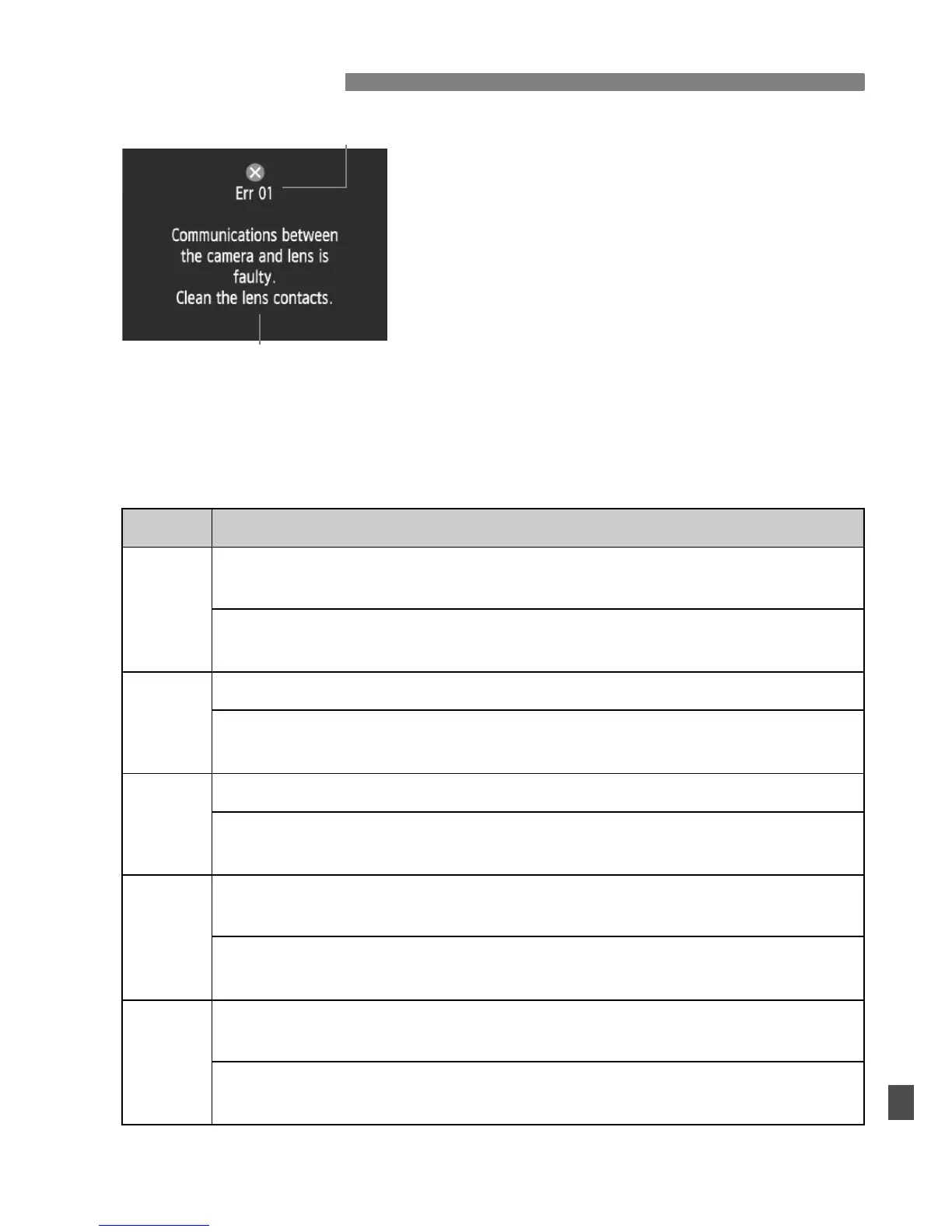 a Canon lens, or have the camera checked or repaired. (p.27,26)