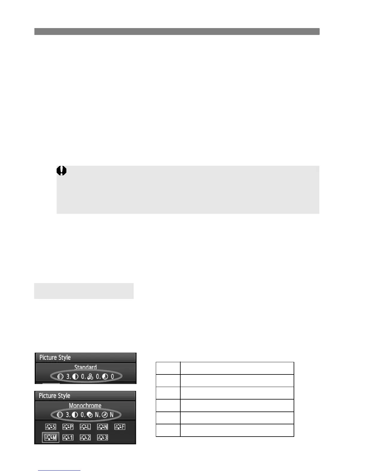 indicate the parameter settings, such as [Sharpness] and [Contrast],
