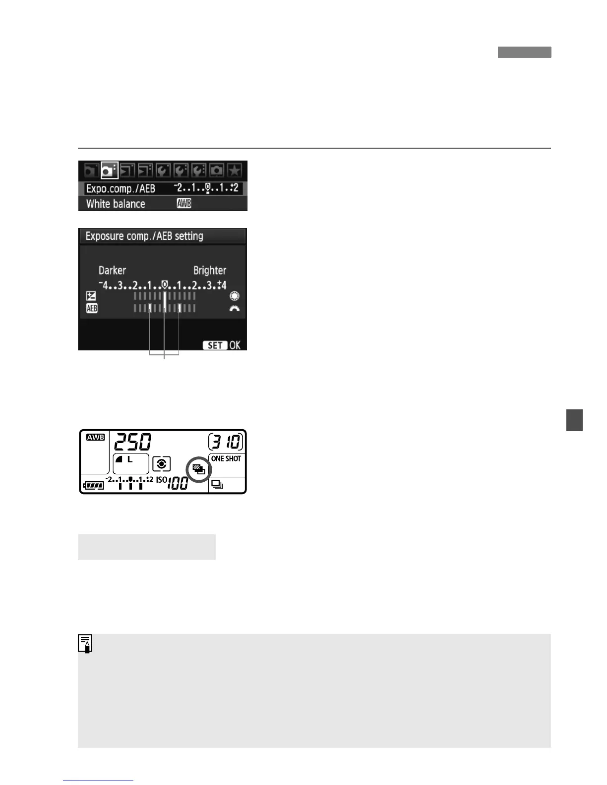 Follow steps 1 and 2 to turn off the AEB amount display.
