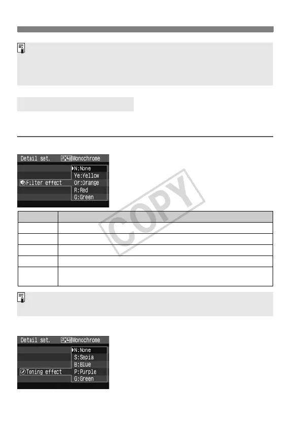 For Monochrome, you can also set [Filter effect] and [Toning effect] in