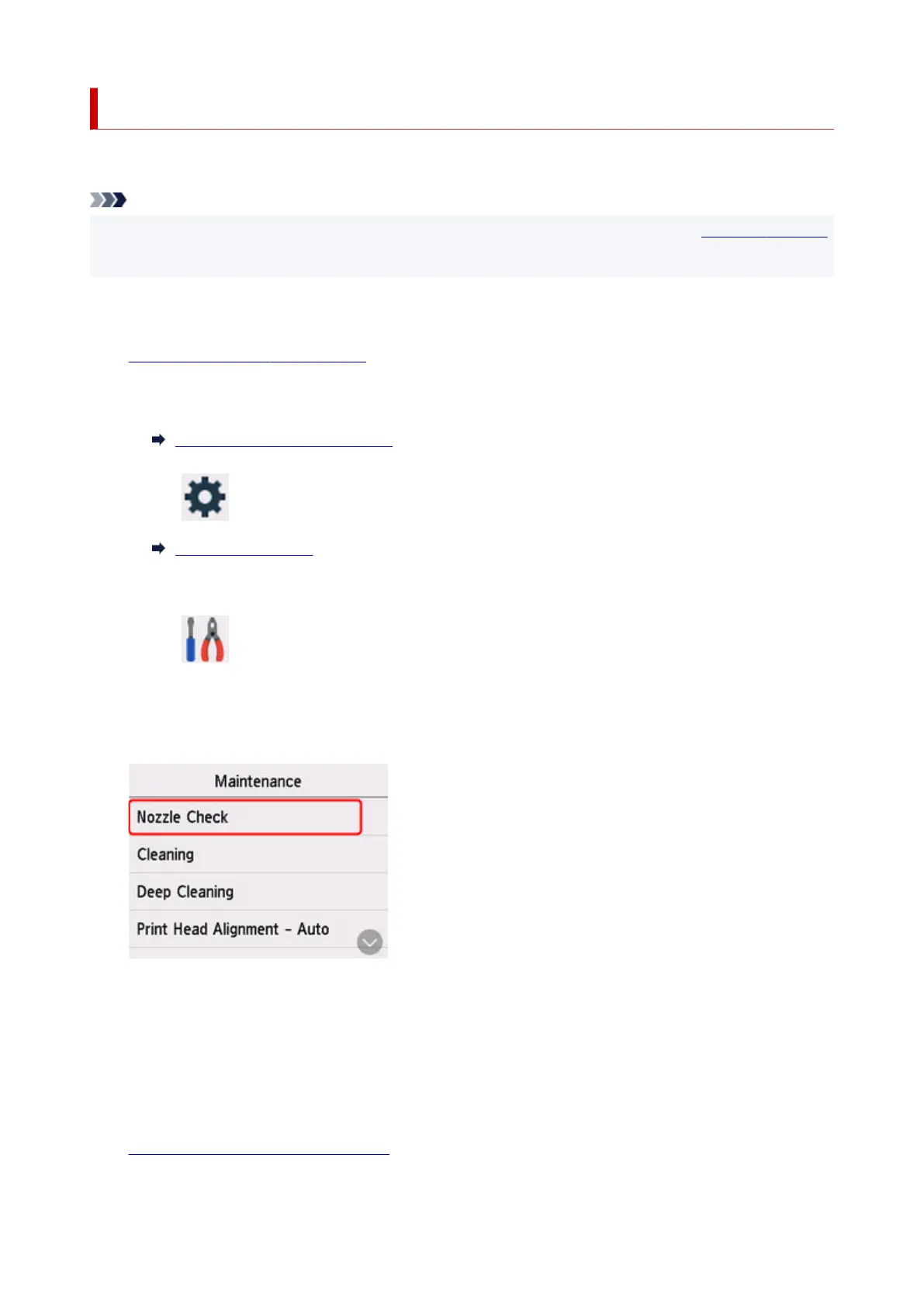 • If the remaining ink level is low, the nozzle check pattern will not be printed correctly. Refill the ink tanks
