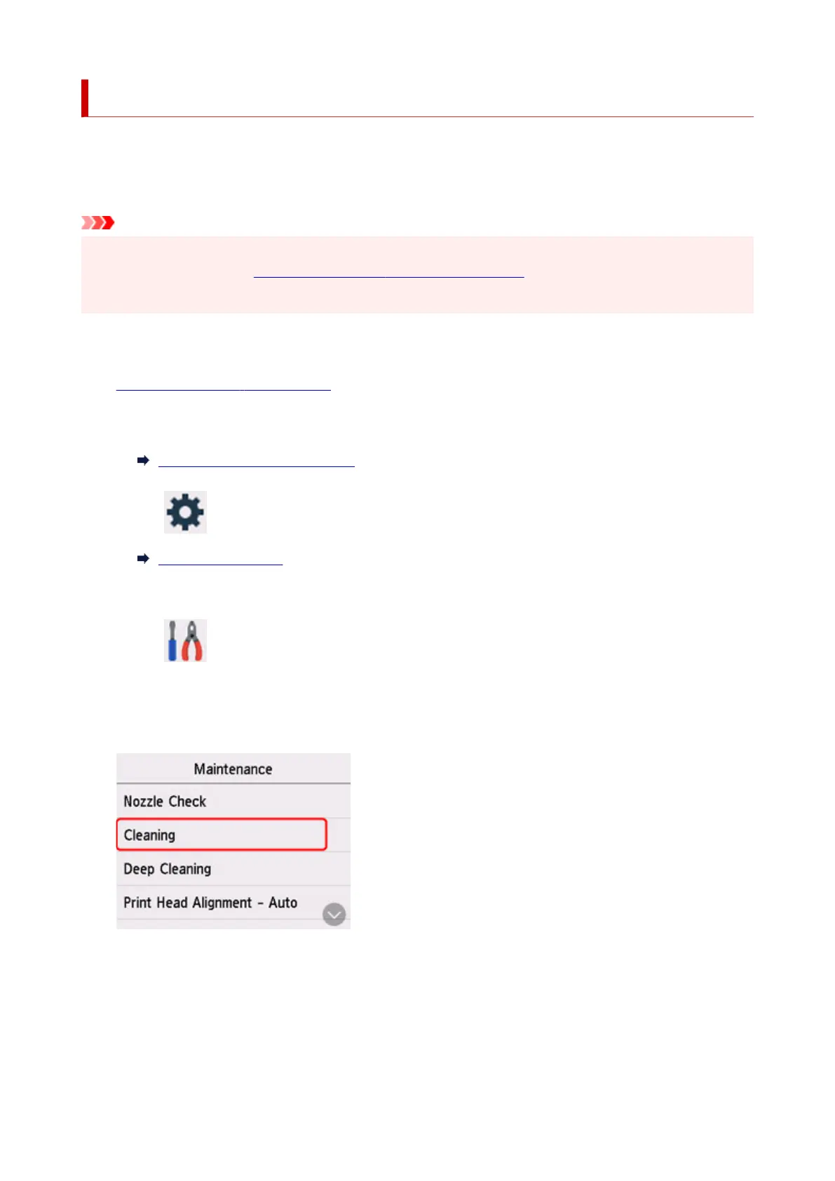 pattern. Cleaning unclogs the nozzles and restores the print head condition.