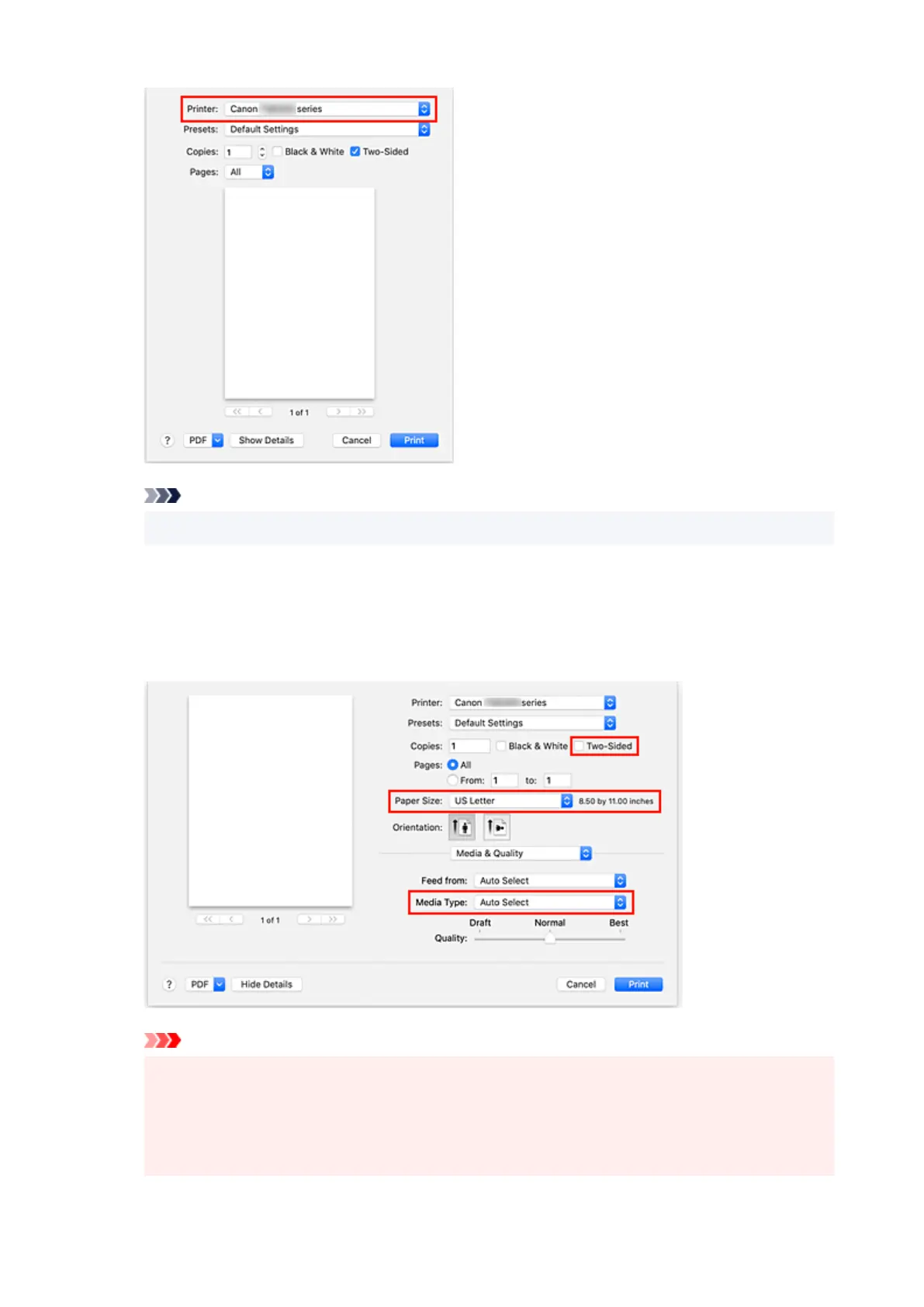 or Rear Tray) from Feed from of the print dialog. If Auto Select is selected in Feed from, the