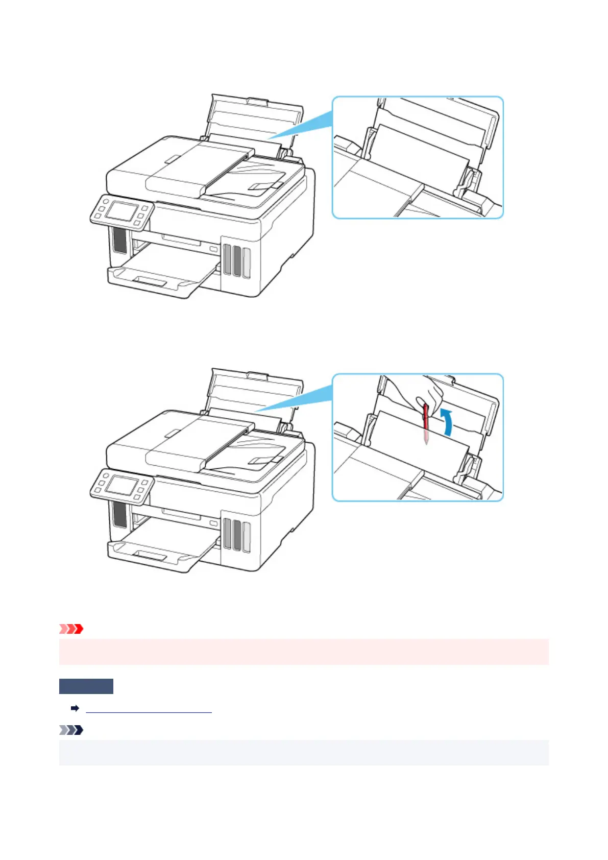 Insert the paper so that your hand does not directly touch the part in the center of the rear tray when
