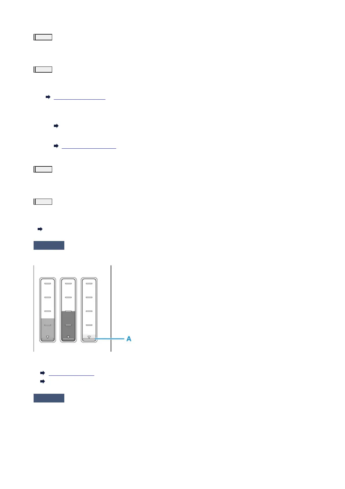 If the remaining ink level is below the lower limit line (A), refill the ink tank with the corresponding color of ink.