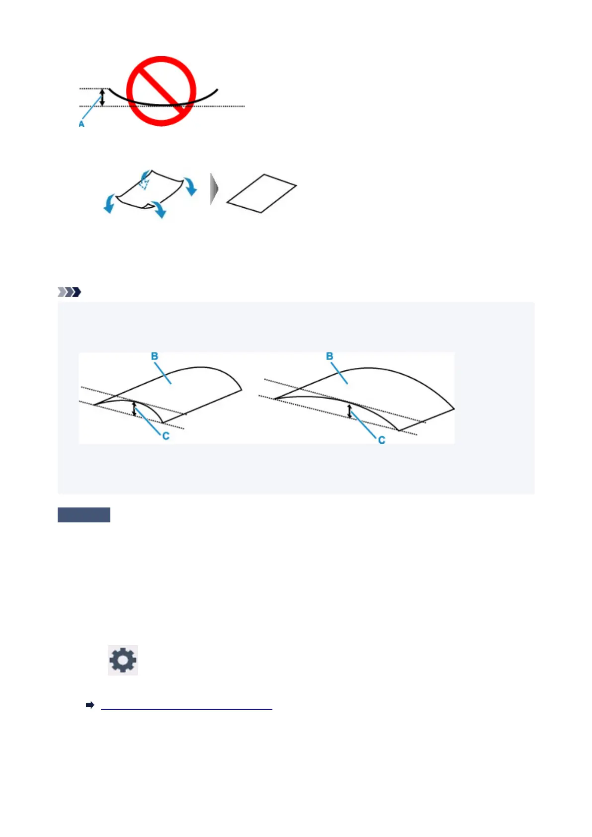 Follow the instructions below to curl the paper outward up to 0.1 in. / 3 mm (C) in height before printing.