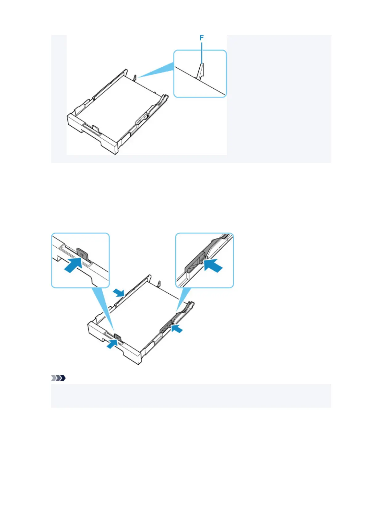 • Keep the paper stack height below the tabs (H) of the paper guides.