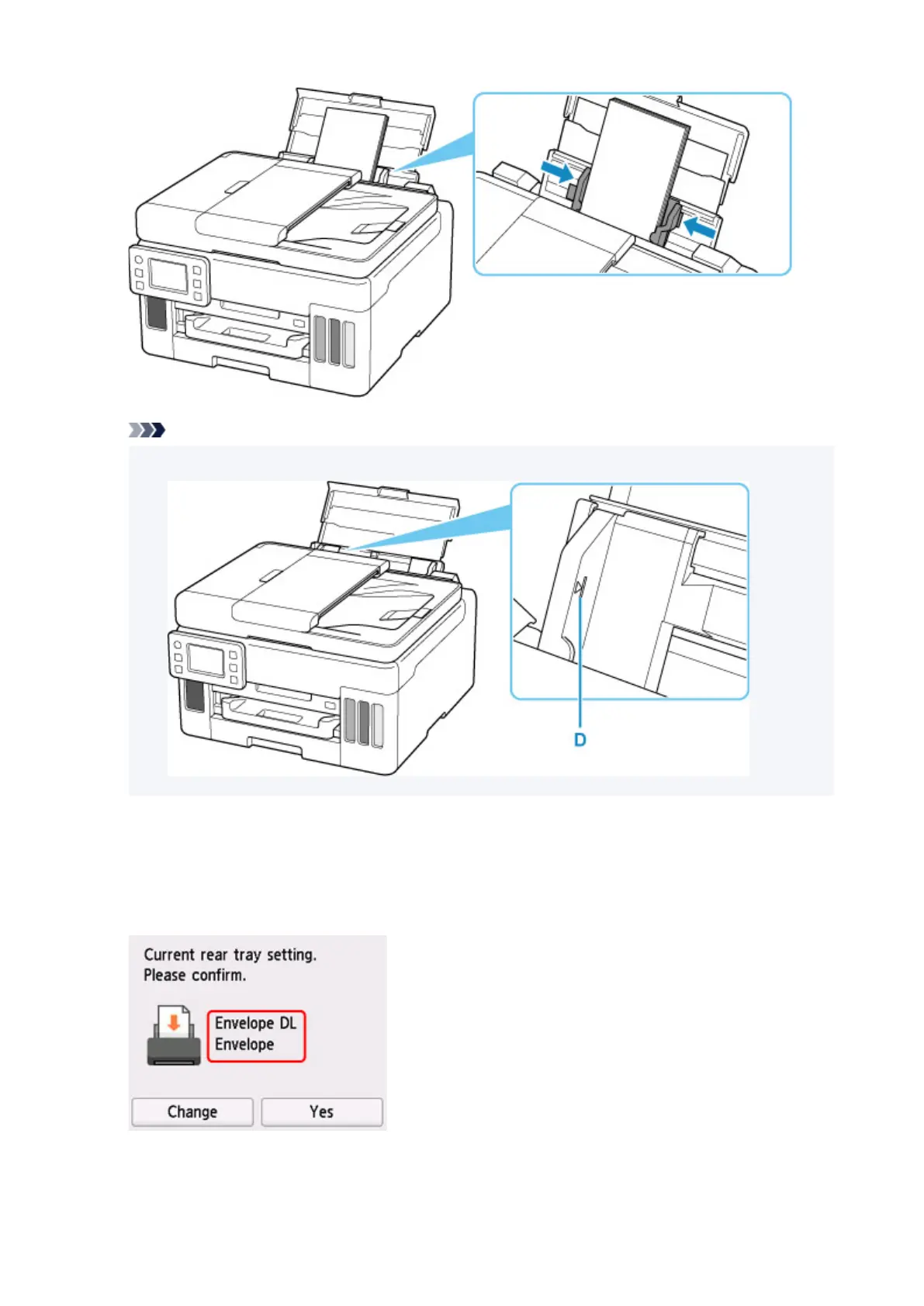 6. If page size and media type shown on touch screen match size and type of envelopes