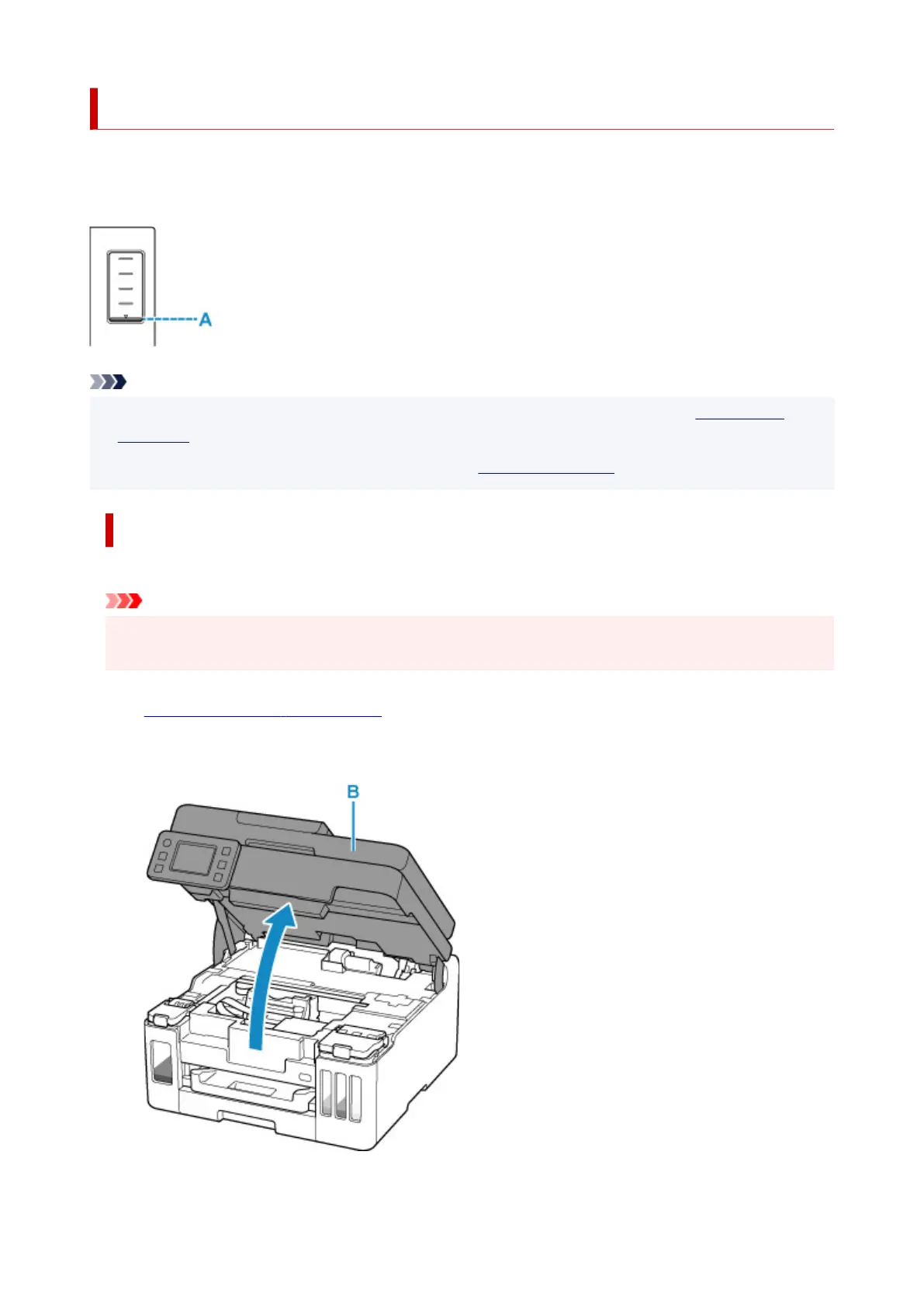 the error. In this state, the printer cannot print. Check the remaining ink level with the ink tank indicator on